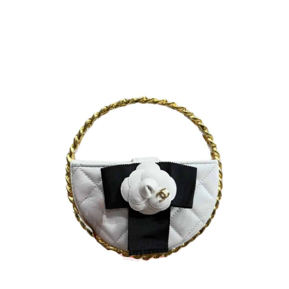 Chanel Pouch Mixed Fibers Gold Tone Metal / White 14cm