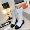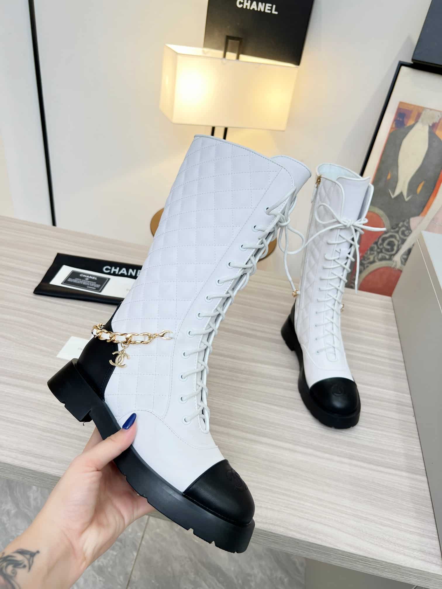 Chanel Quilted Chain Lace Up Combat Long Boots White