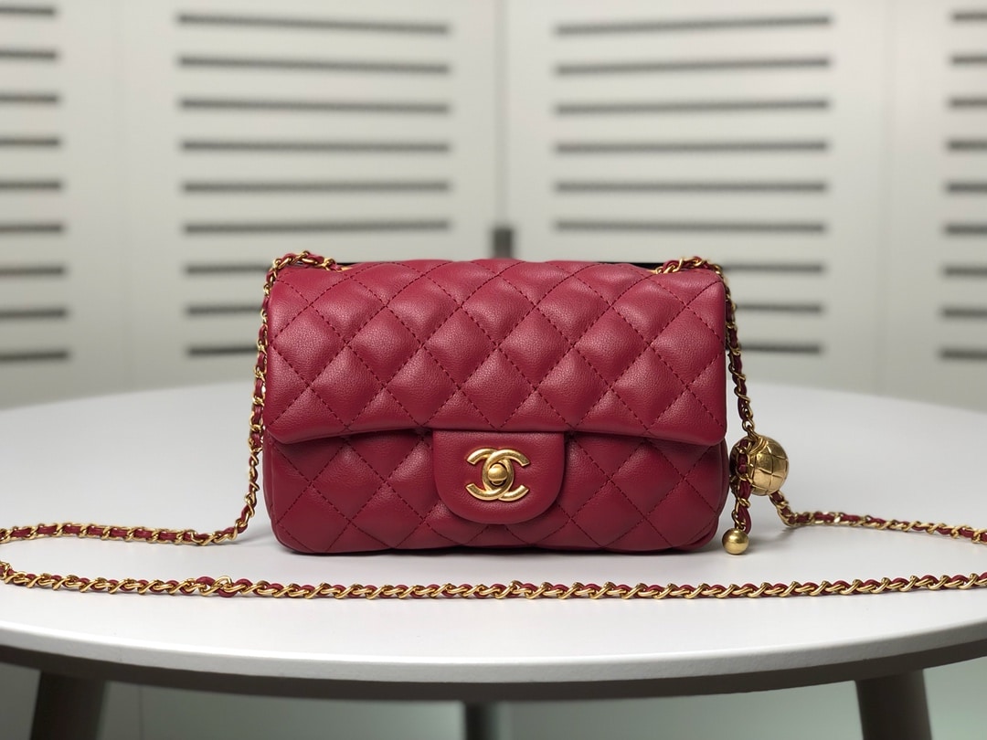 Chanel Quilted Mini Cc Rectangular Pearl Crush Flap Bag / Red 20cm