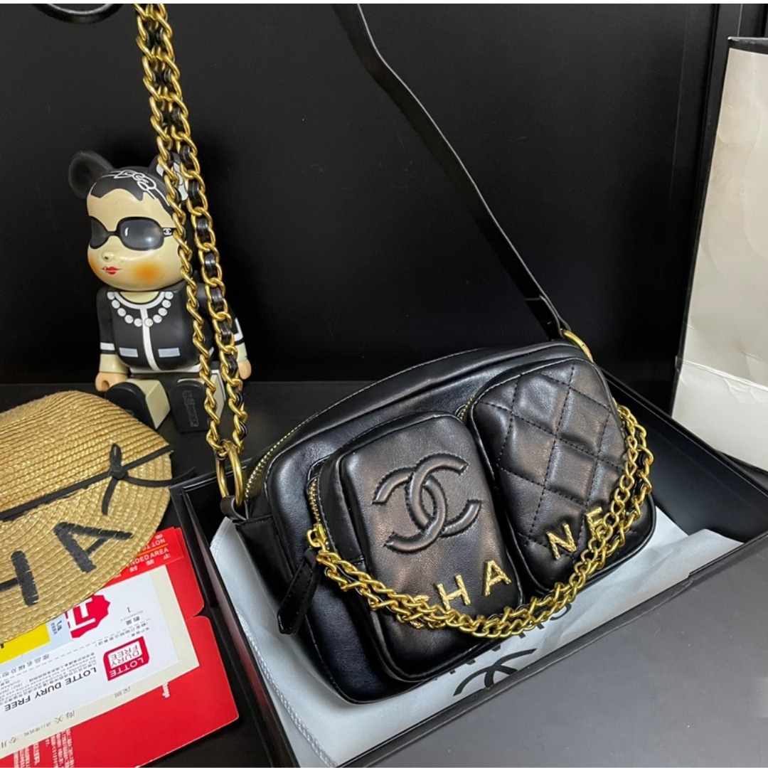 Chanel//Quilted Small Camera Case Calfskin//Black//22cm