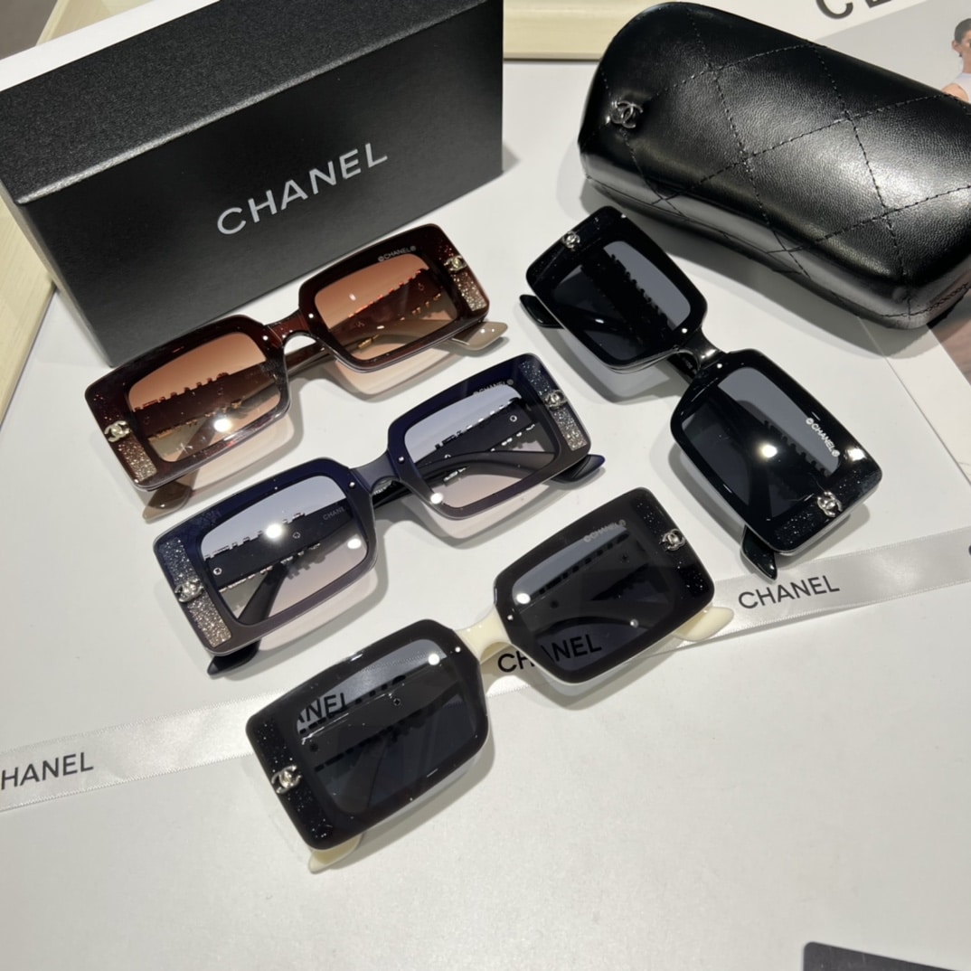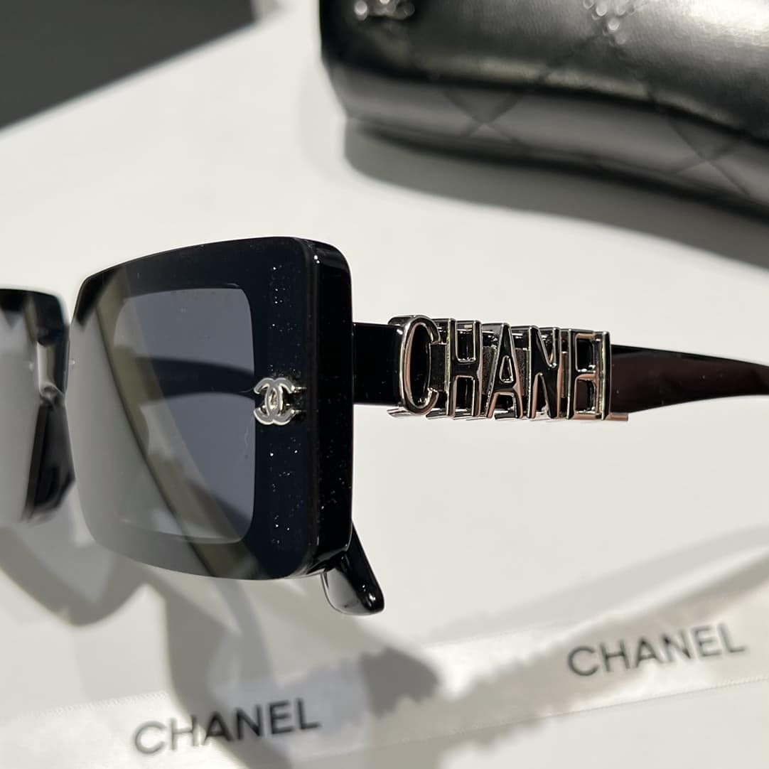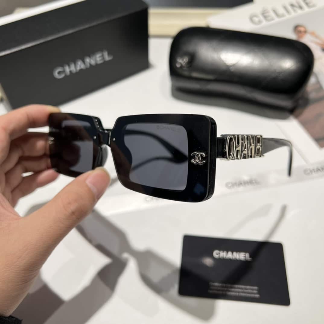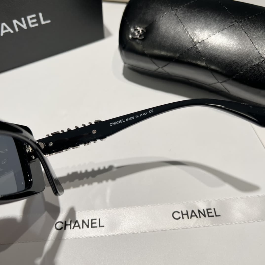 Chanel Rectangle Shiny Design Sunglasses / Black