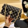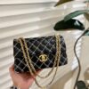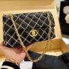 Chanel //Satin Flap Shoulder Bag With Natural Hemp Diamond Stitching //Black //25cm
