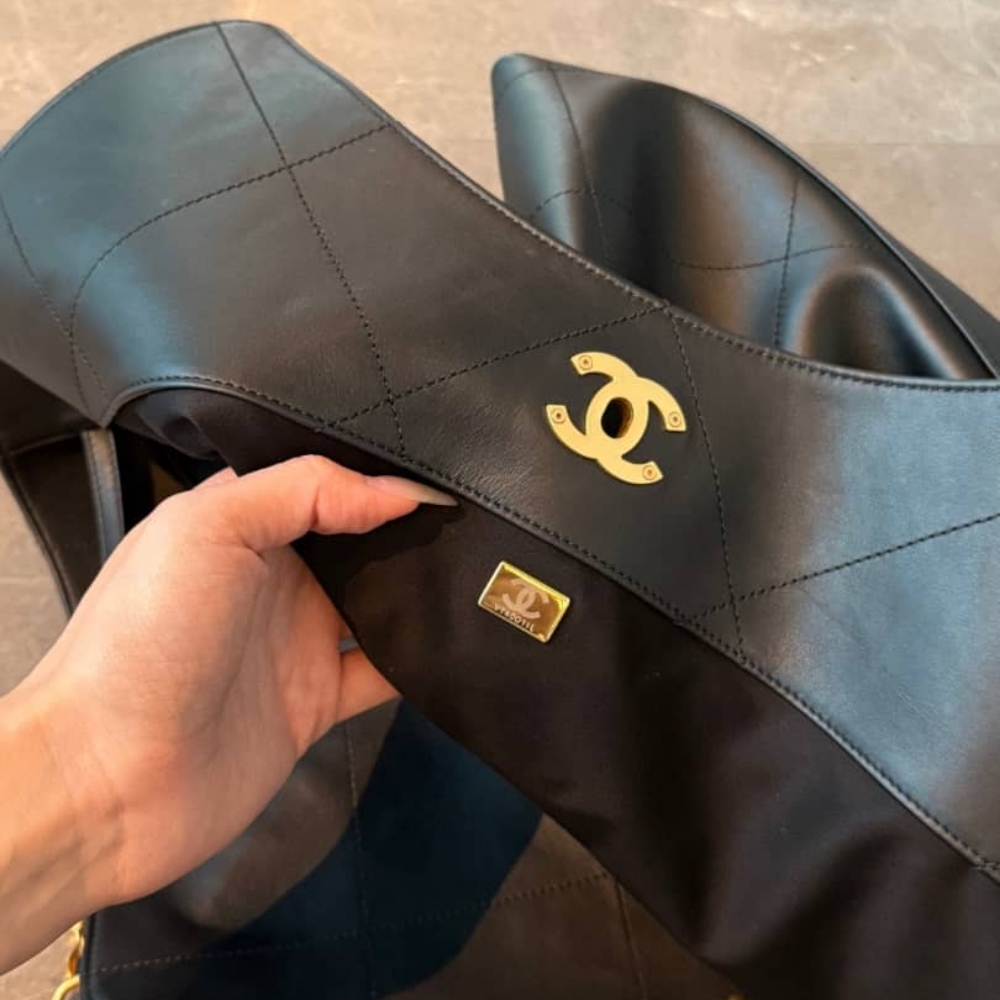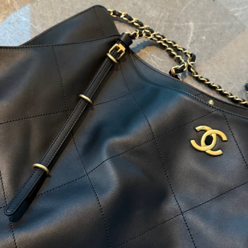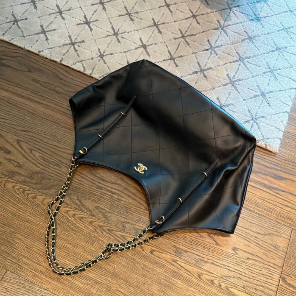 Chanel Shopping Bag / Black Leather / 13.0 x 11.4 inches / Gold Metal / Fit Daily Essentials / Elegant Style / Bag for Women