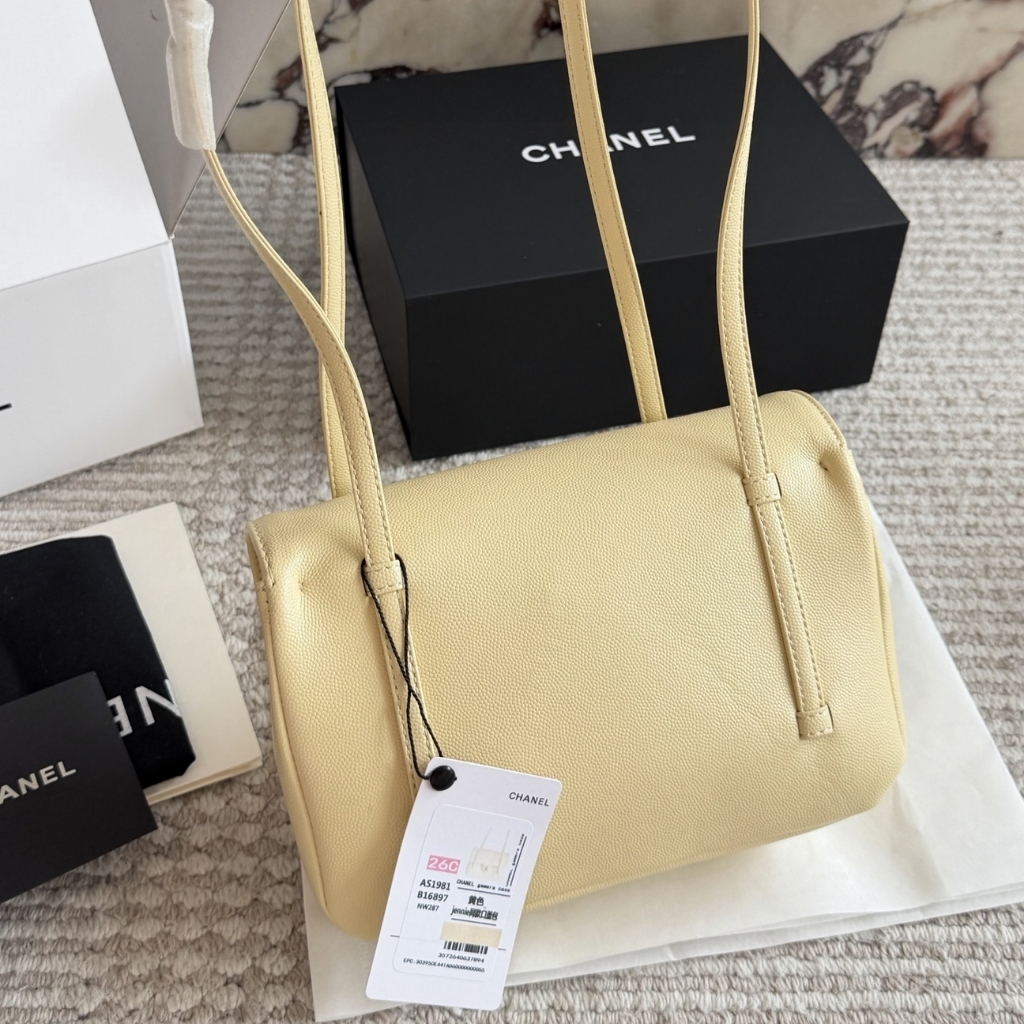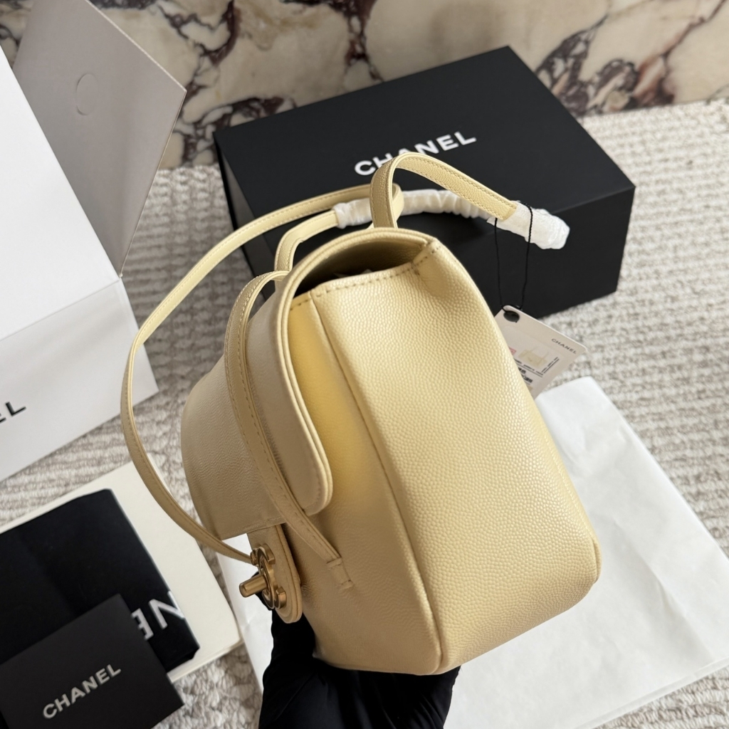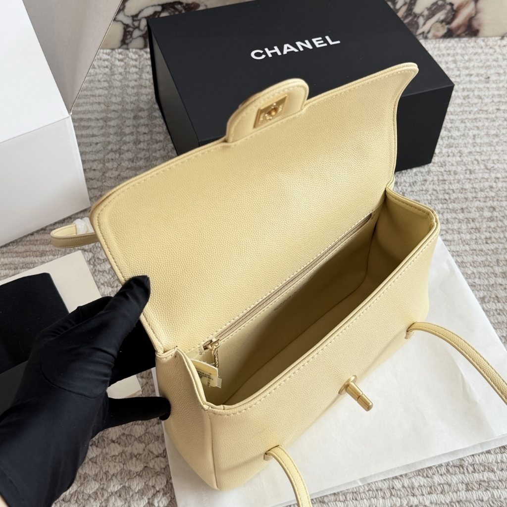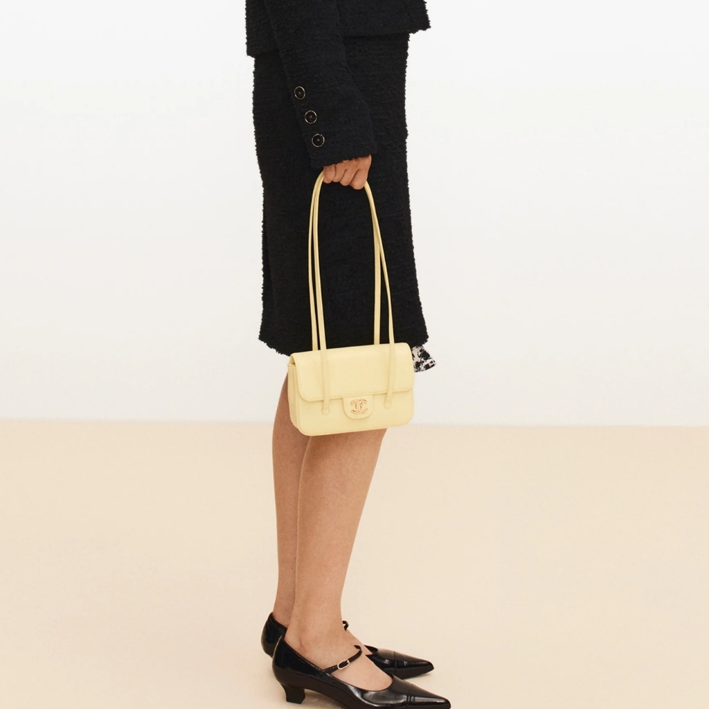 Chanel Small Flap Bag / Grained Shiny / Gold Tone / Light Yellow / 4.5 x 6.7 x 2 inches / Fits smartphone, and essential cosmetics / Daily Style for Women