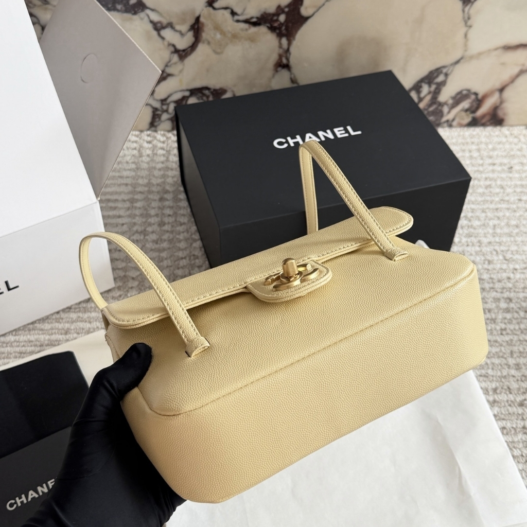 Chanel Small Flap Bag Grained Shiny And Gold Tone Light Yellow 22cm