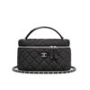 The features a compact, structured silhouette with the signature diamond quilting and the iconic CC logo on the front. The small top handles add a classic touch, and the 19 cm size makes it an elegant option for special occasions or daily use.