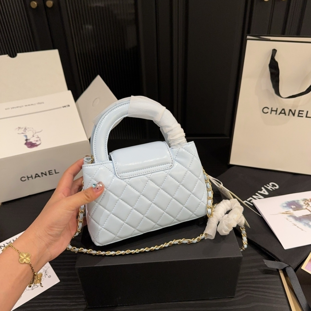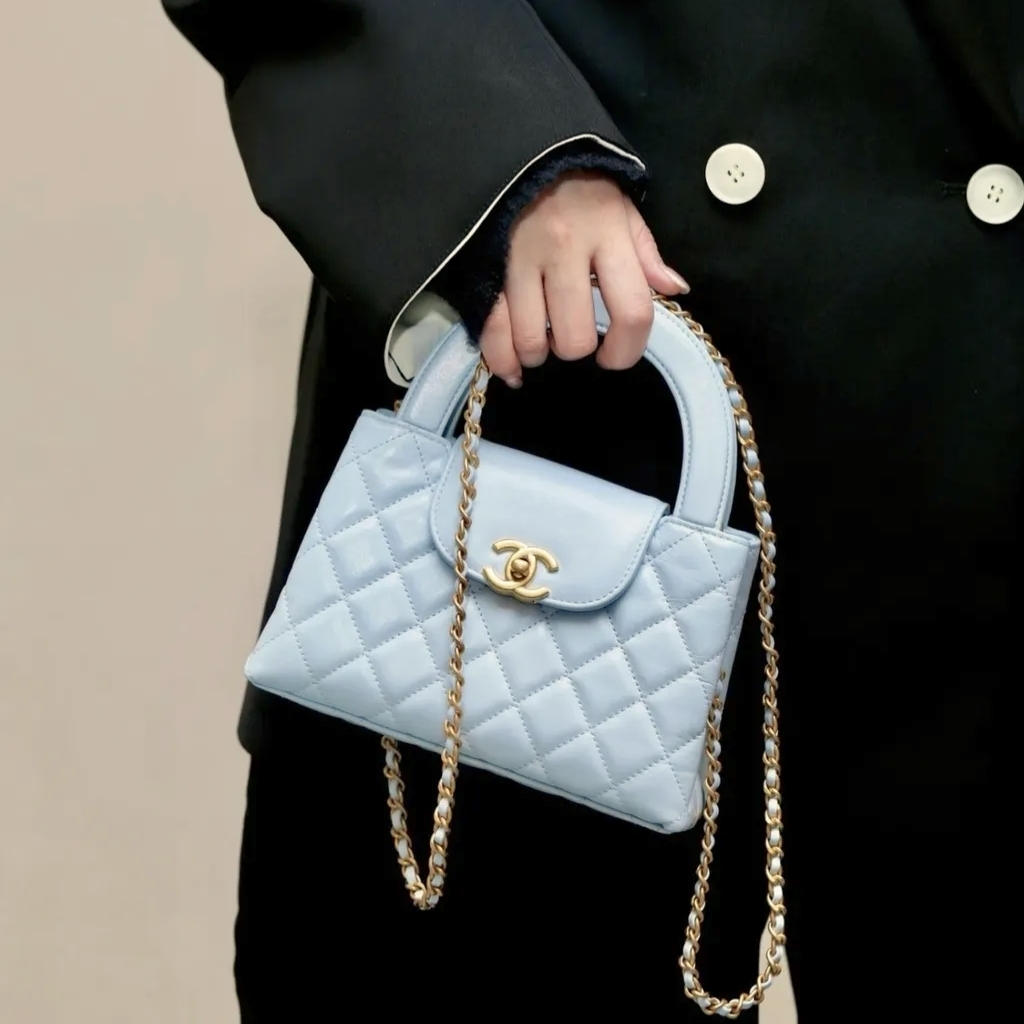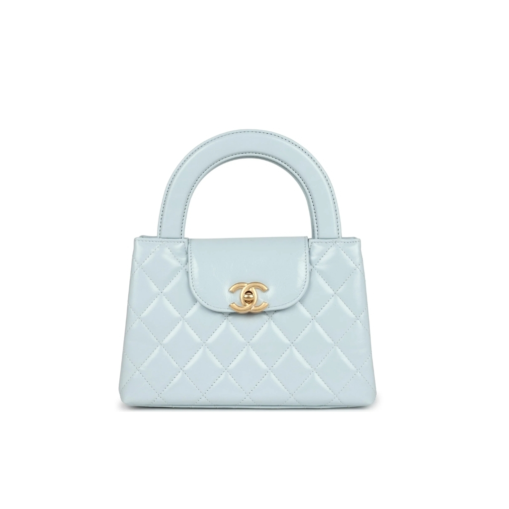 Replica 1:1 – Chanel Small Kelly Shopper Shiny And Gold Hardware Light Blue 19cm