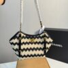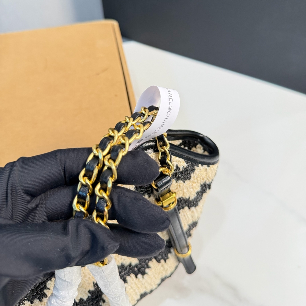 Chanel Small Shopping Bag / Braided Straw / Beige and Black / Gold Tone Metal / 7.9 x 7.1 inches / Daily Bag / For Women