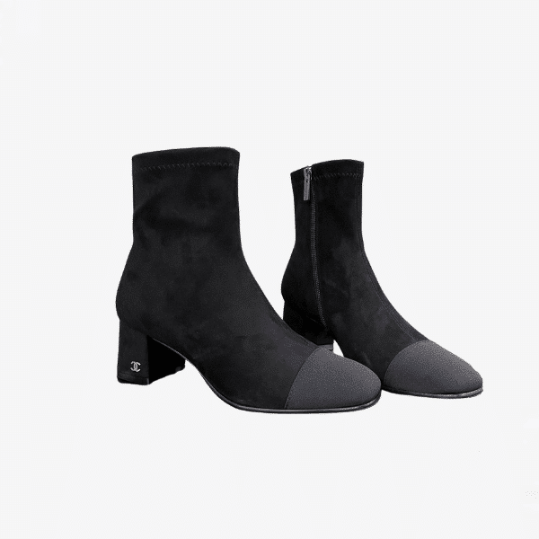 Chanel Square Toe Suede Ankle Boots Black