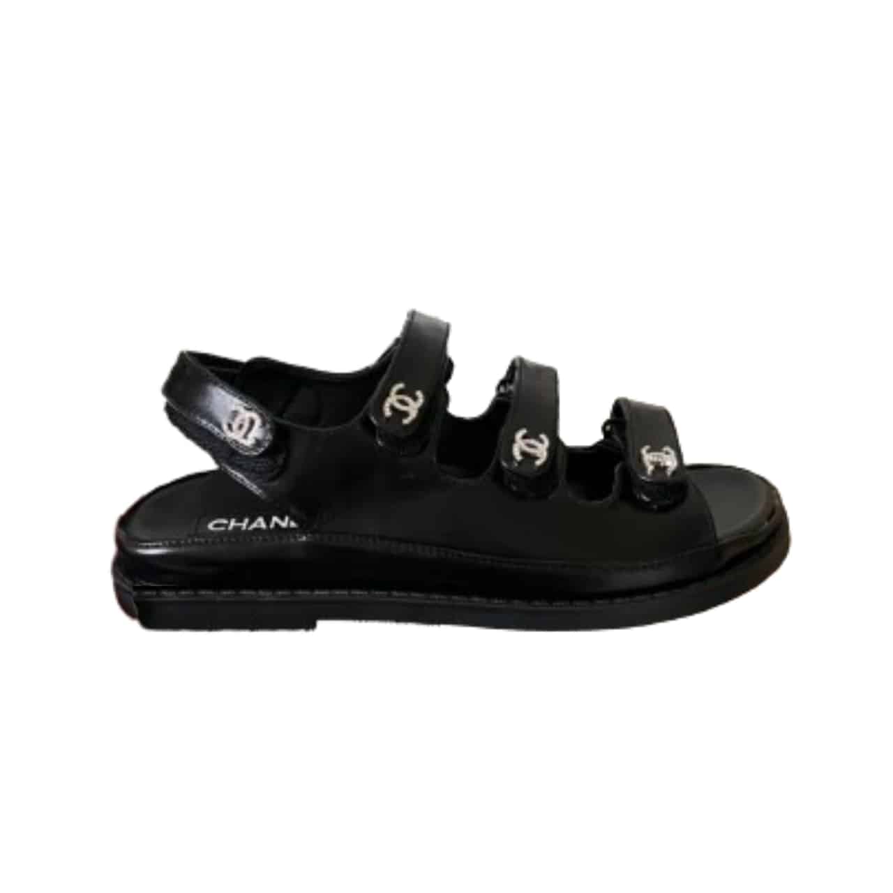 Chanel Triple Velcro Strap Sandals Black G45628 B16403 94305