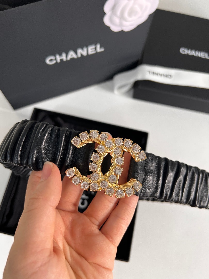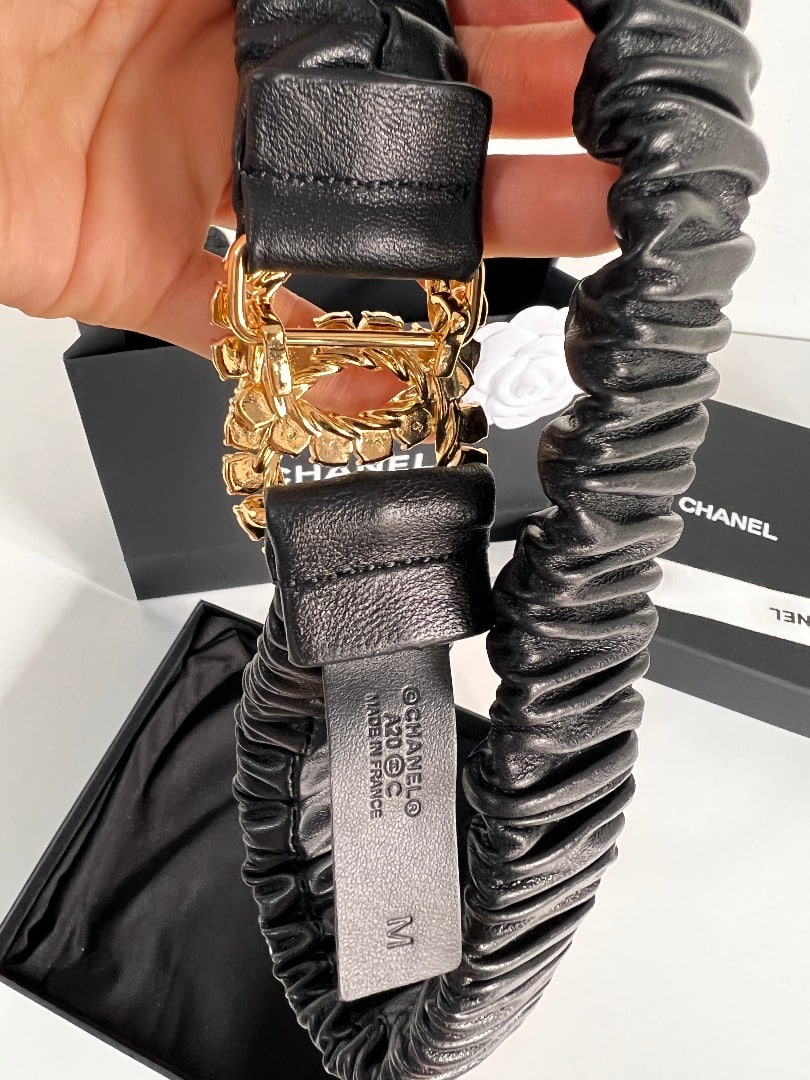 Chanel Women’S Cc Gold Belt With Pearls 30Mm