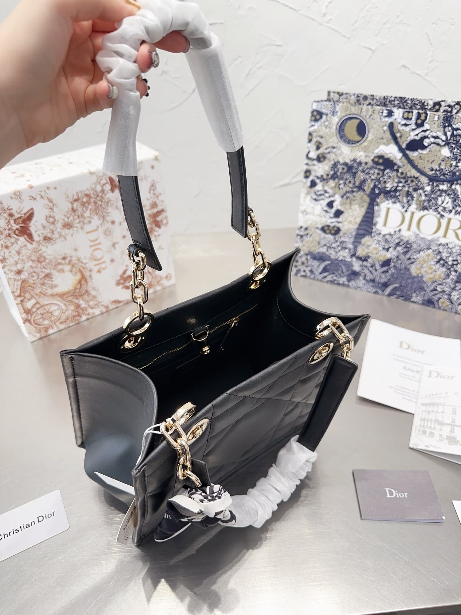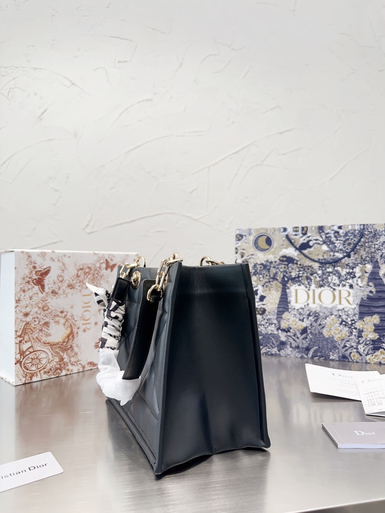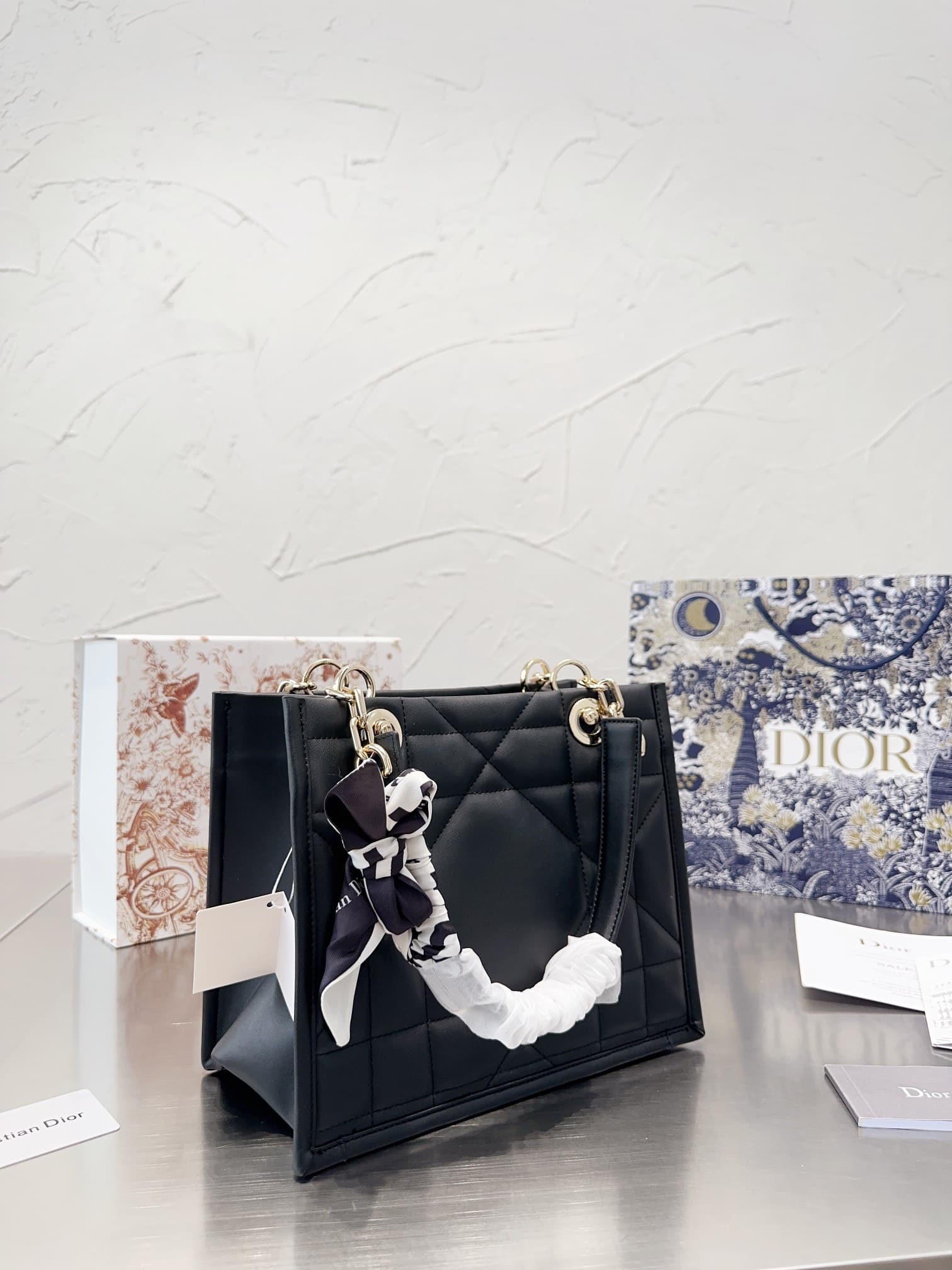 Dior//Essential Tote Bag Archicannage Calfskin//Black//26cm