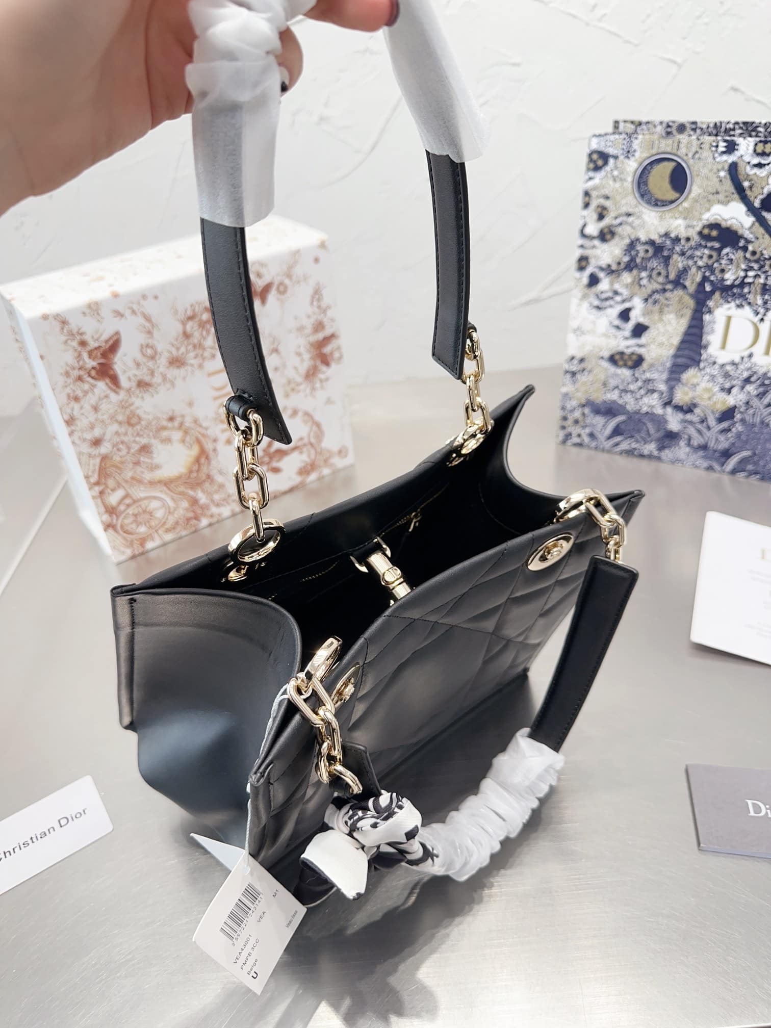 DIOR ESSENTIAL TOTE BAG ARCHICANNAGE CALFSKIN BLACK 26CM M8722OZVJ M900