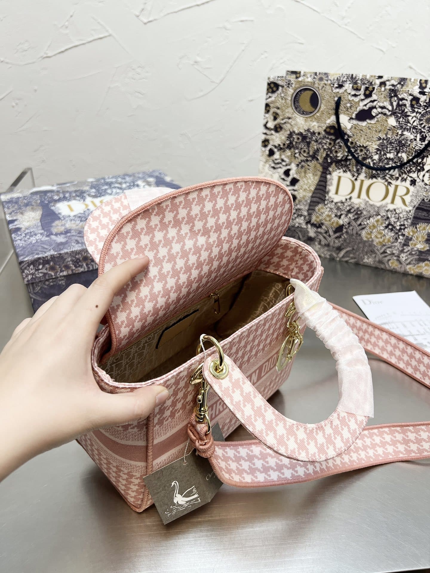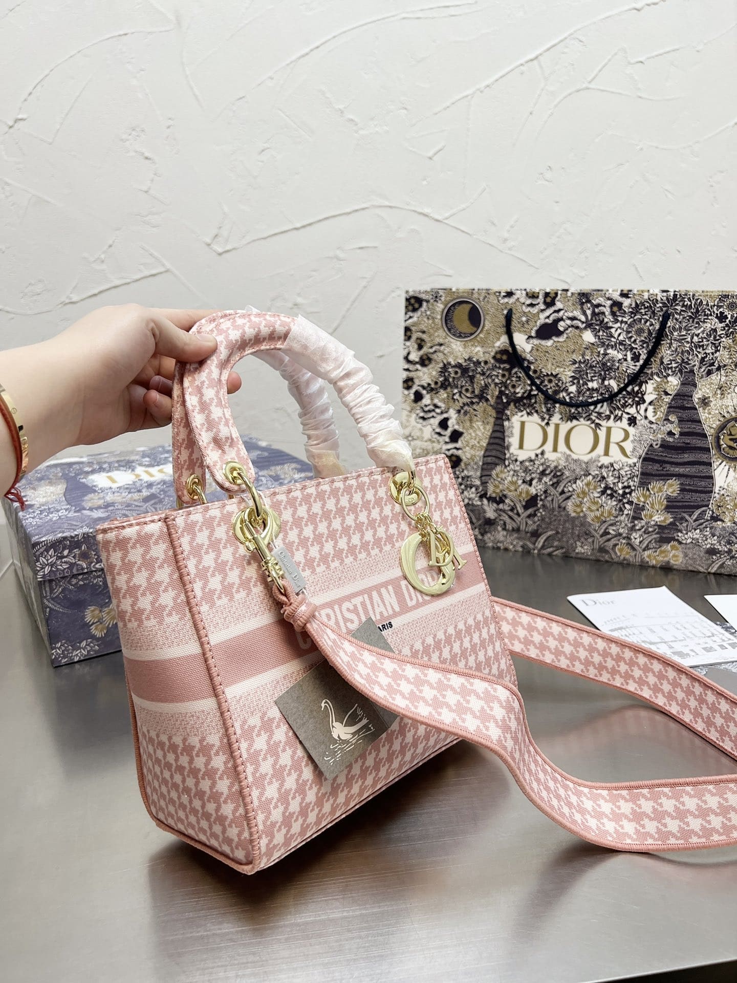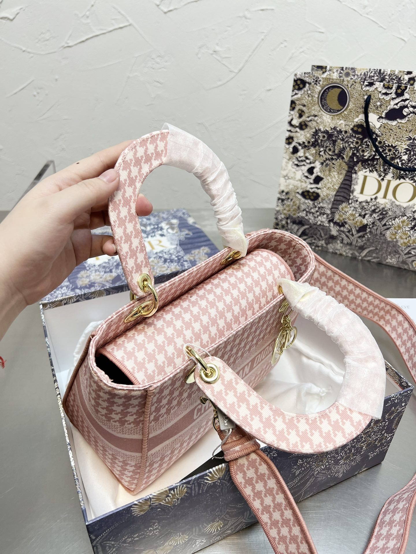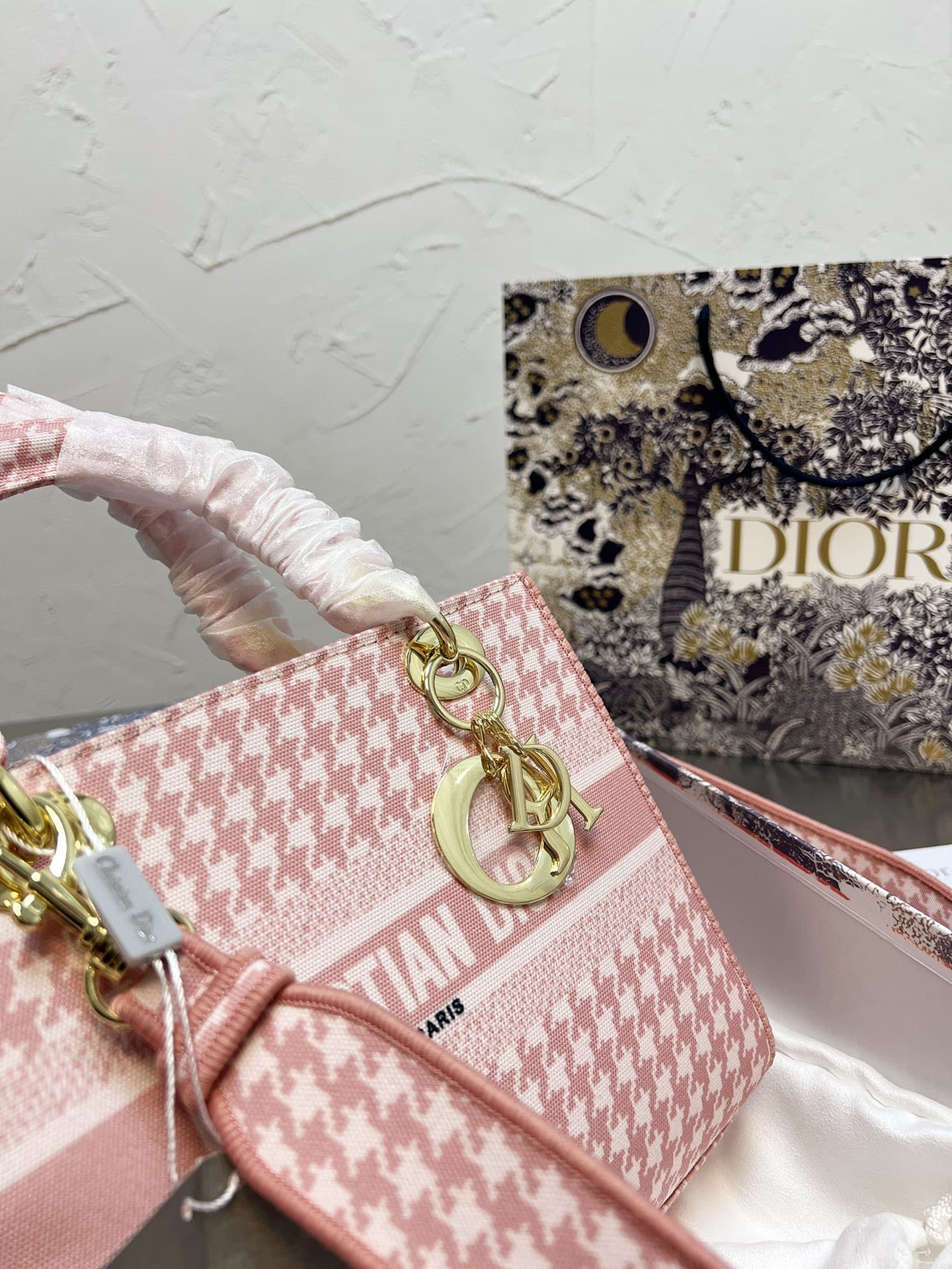 Dior//Lady D-Lite Bag Houndstooth Embroidery//Pink//24cm
