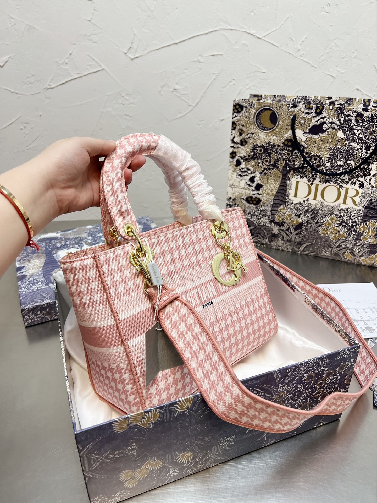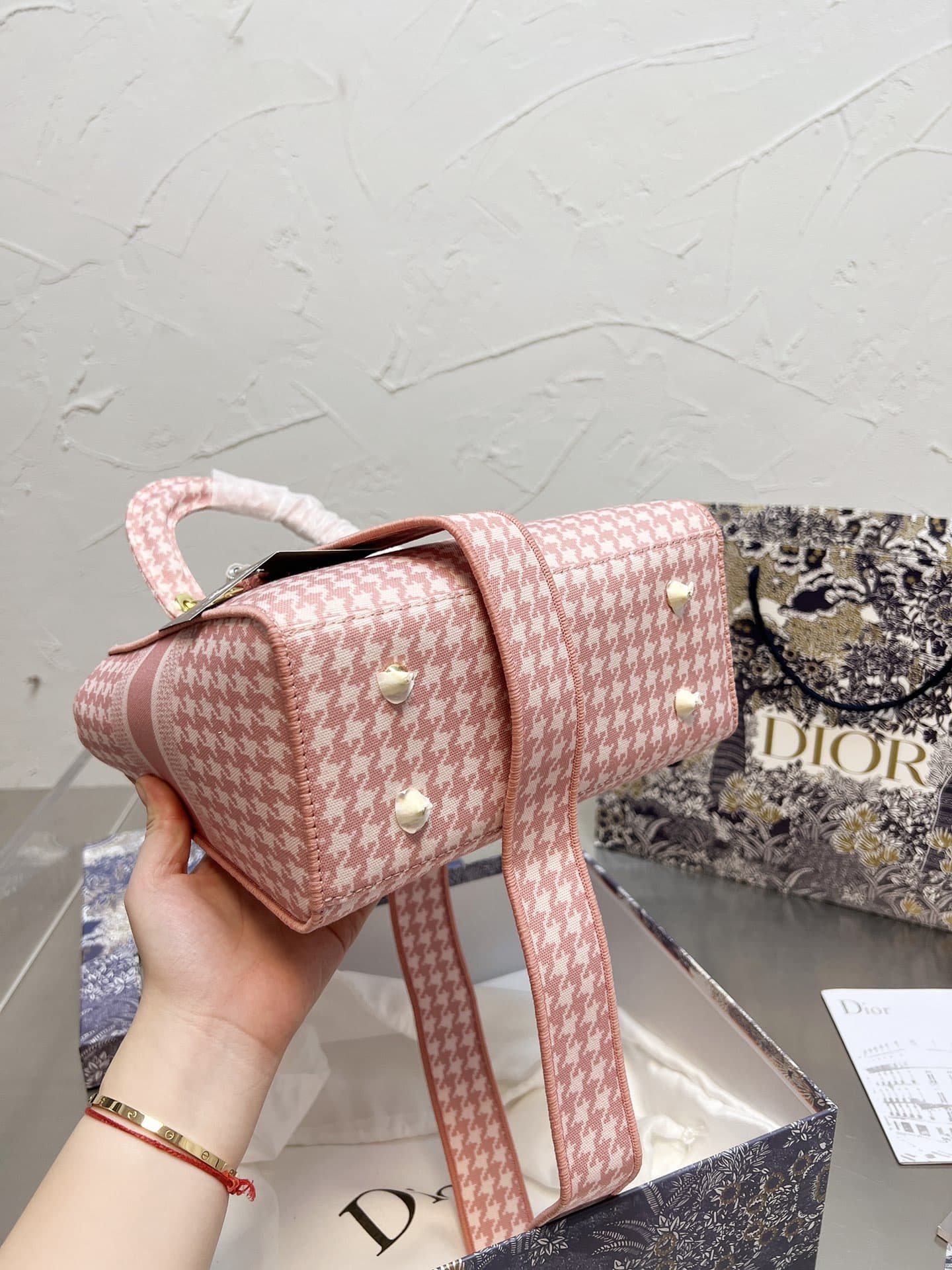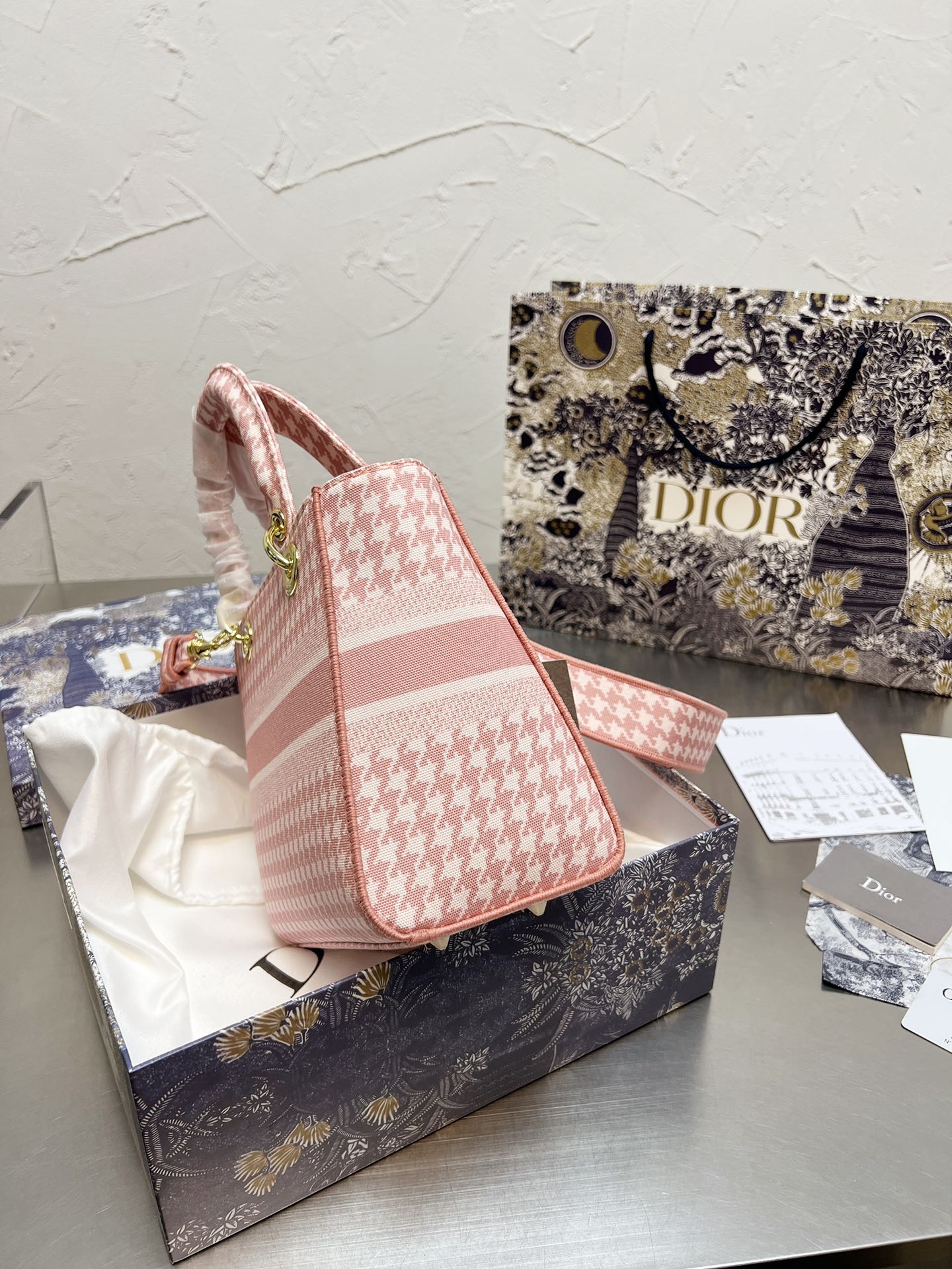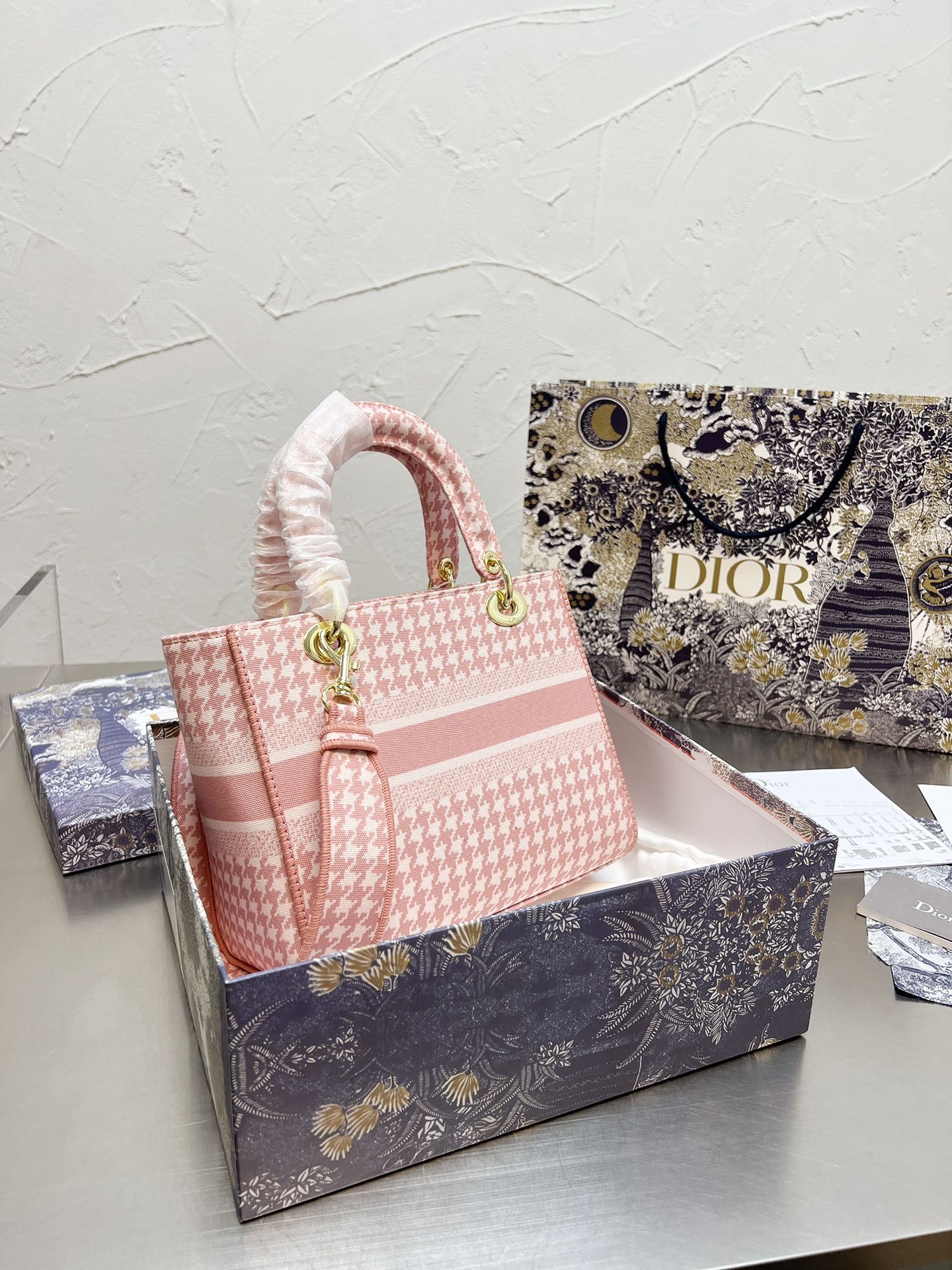 Dior//Lady D-Lite Bag Houndstooth Embroidery//Pink//24cm