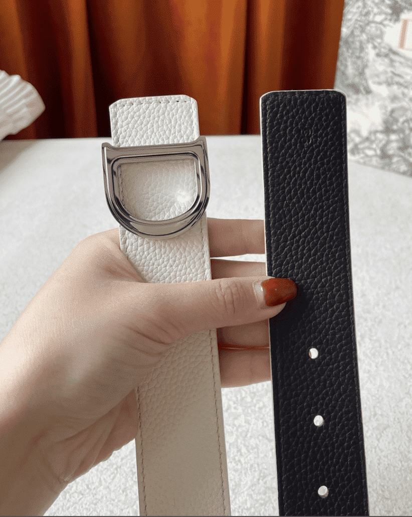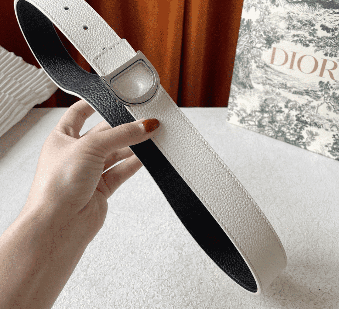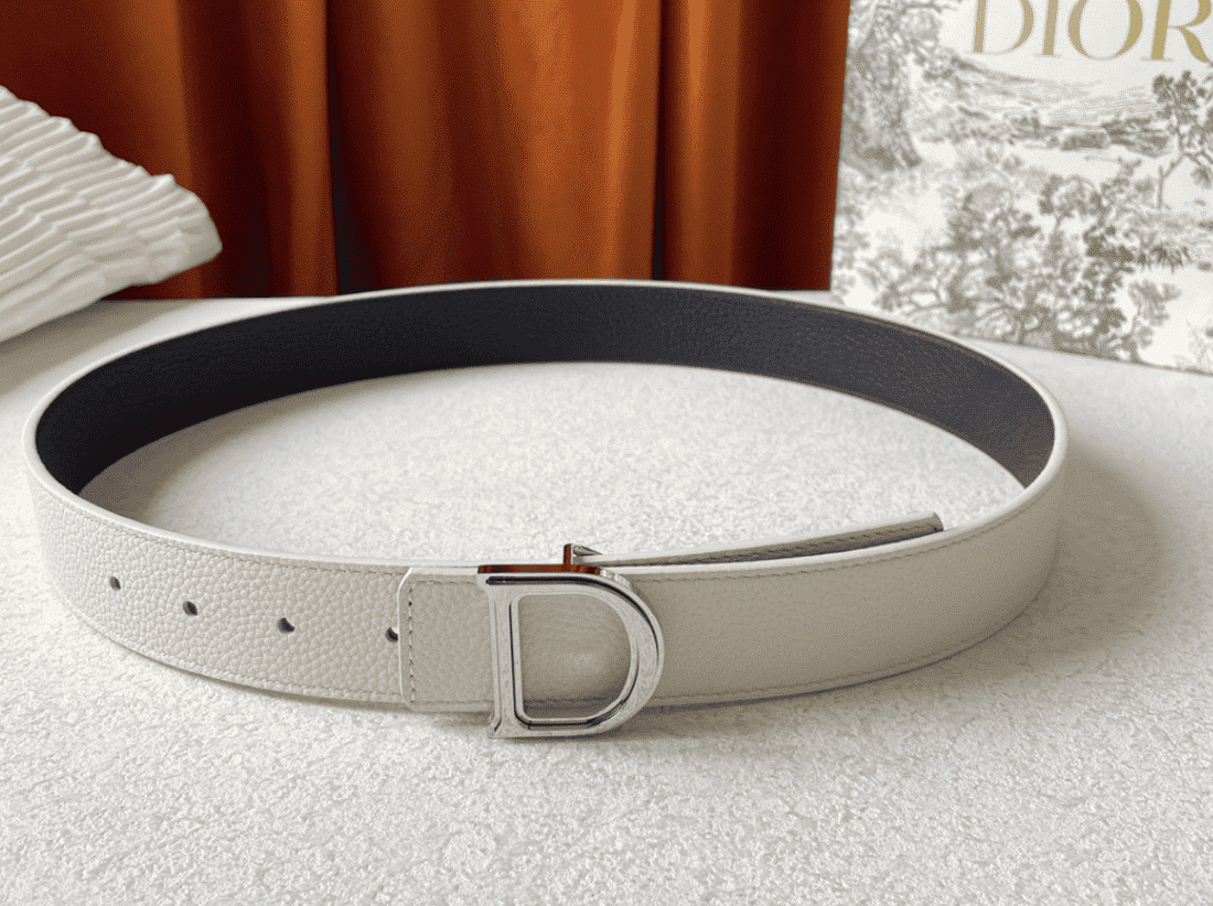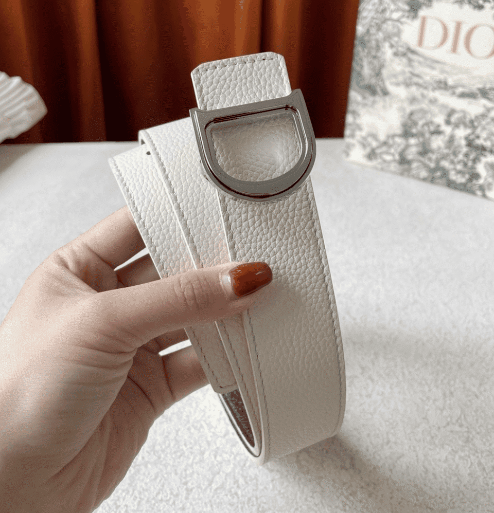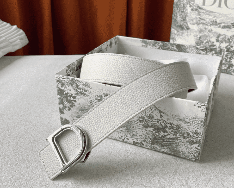 DIOR LEATHER BELT WITH D LOGO WHITE 35MM