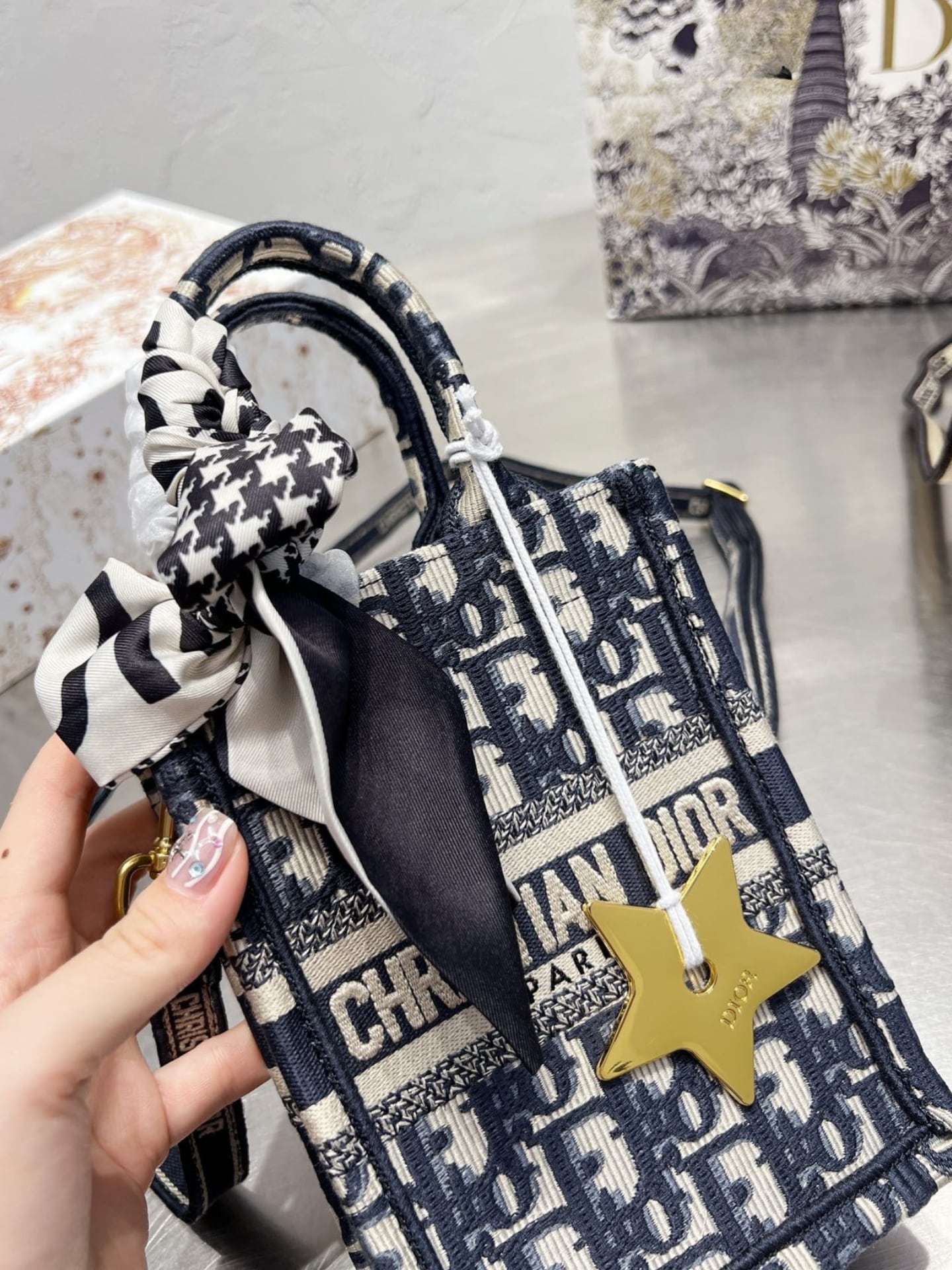 Dior//Mini Book Tote Phone Oblique//Blue//14cm