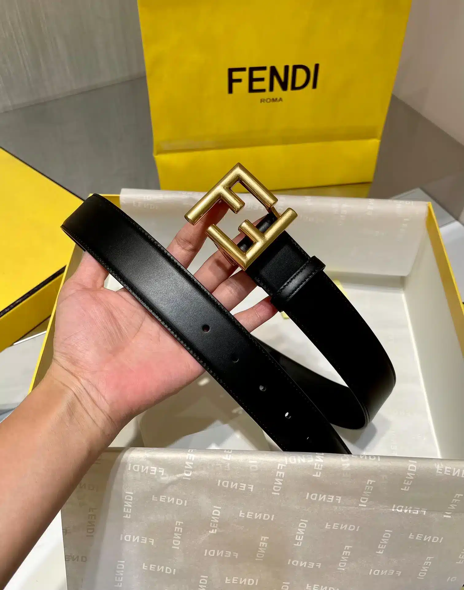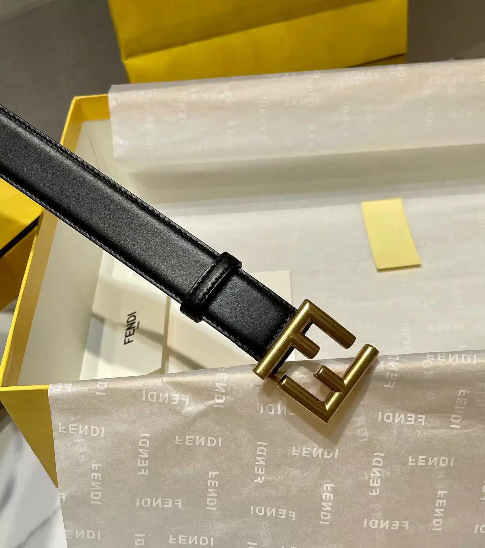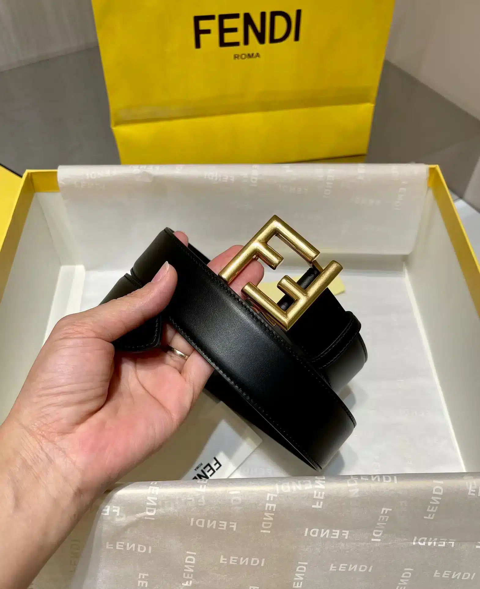 Fendi Black Leather Belt With Ff Gold Buckle 40Mm