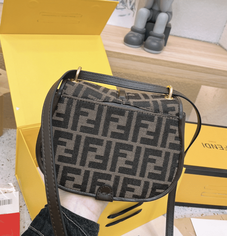 - Small satchel bag with curved, feminine lines made of fabric with an FF jacquard motif.