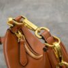 - Mini hobo bag made of denim blue FF jacquard motif fabric, decorated with vintage gold metal FENDI lettering.