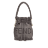 - Oversized metal F clasp wrapped in tone-on-tone suede.