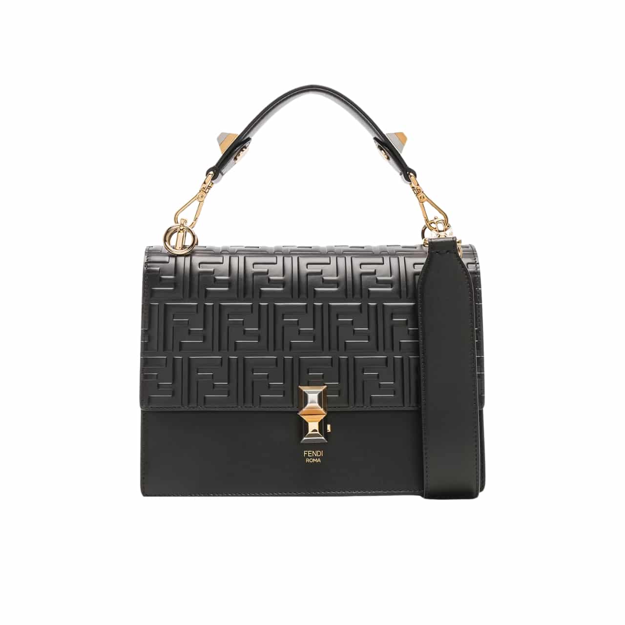 Fendi Logo Embossed Kan I Black 24cm/9.5in