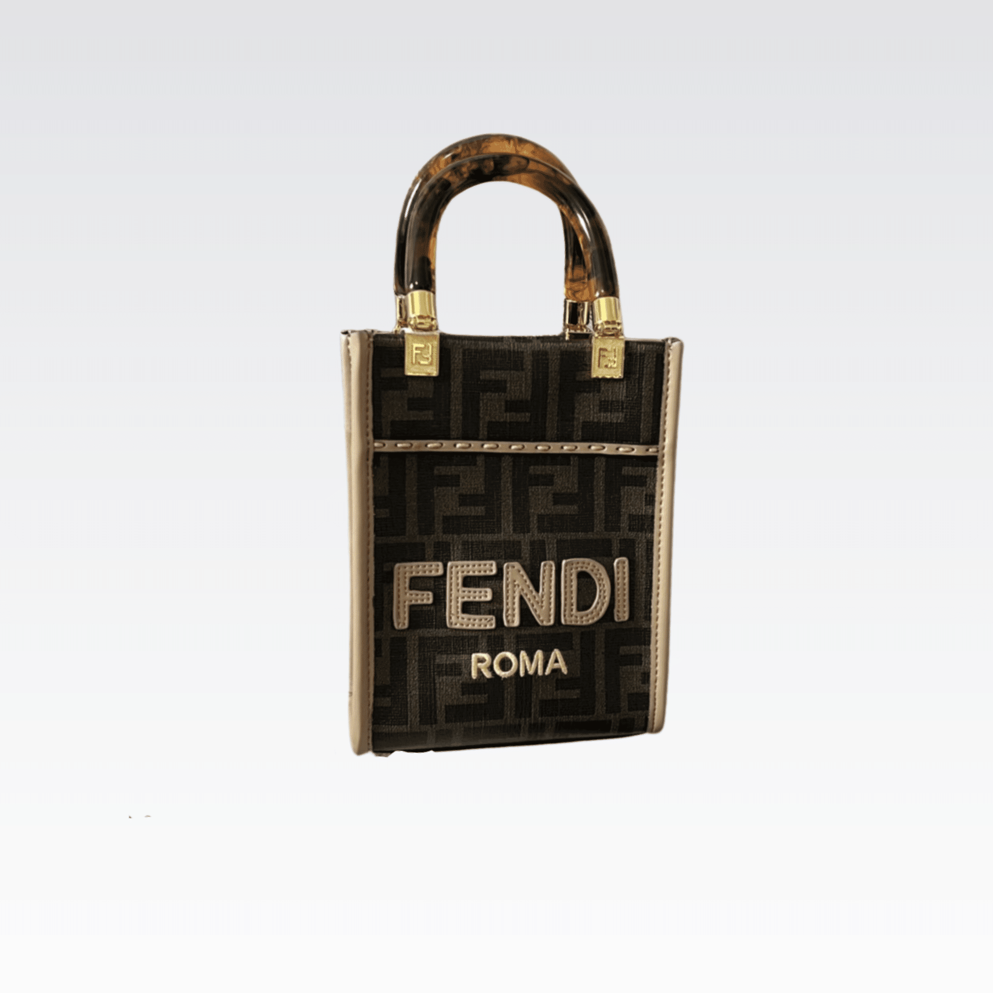 FENDI MINI SUNSHINE SHOPPER BROWN 18CM