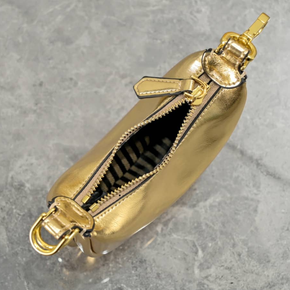 - Nano Fendigraphy Hobo bag with zip fastening, embellished with vintage gold metal FENDI lettering.