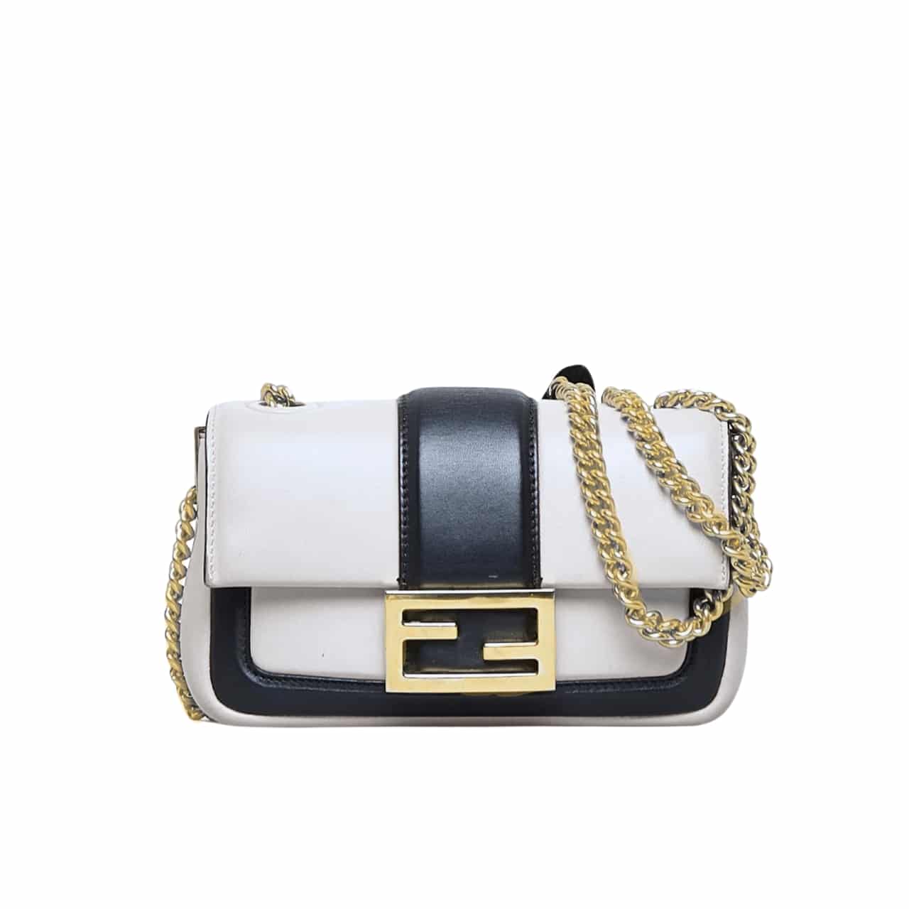 Fendi Women Mini Baguette Chain Shoulder Bag White 19Cm