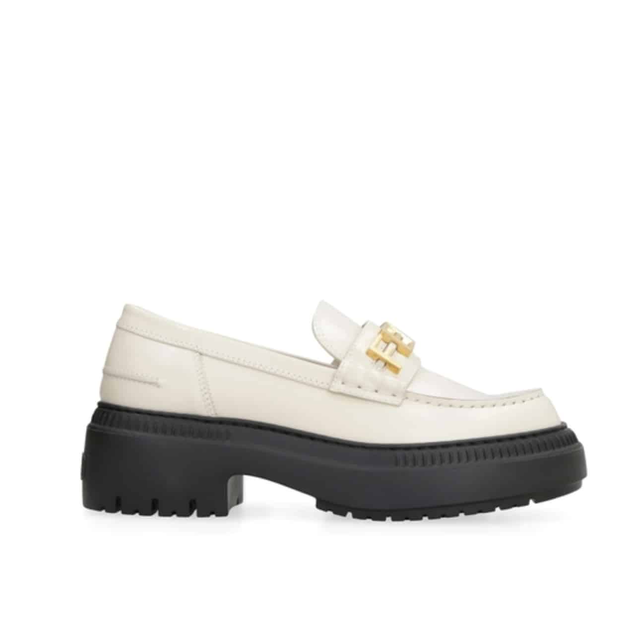 - Robust Fendigraphy loafer featuring Fendi lettering and a rubber lug sole.