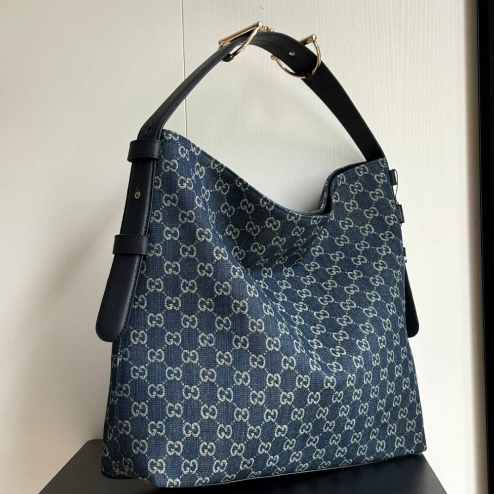 Gucci Beatrix Large Tote Bag Blue And White Gg Denim 40Cm