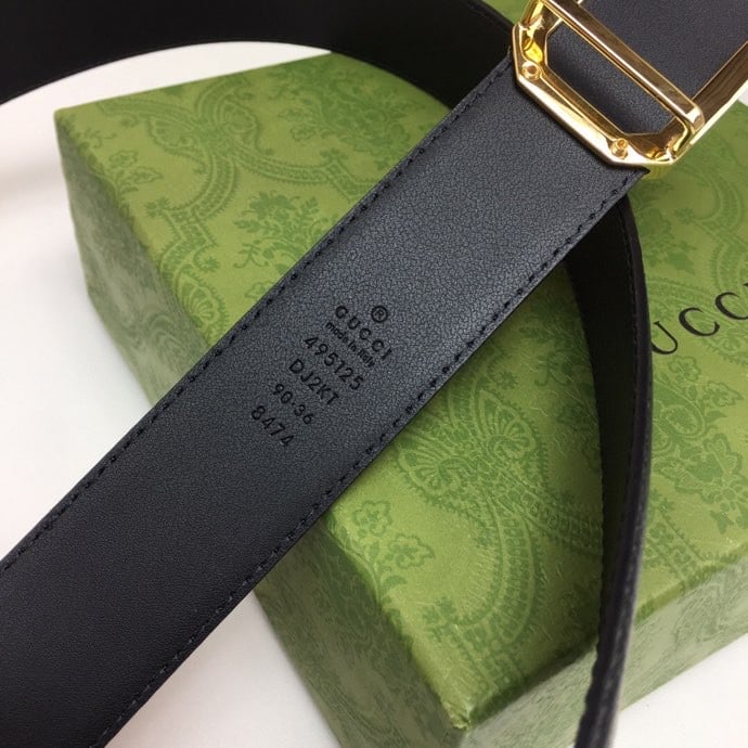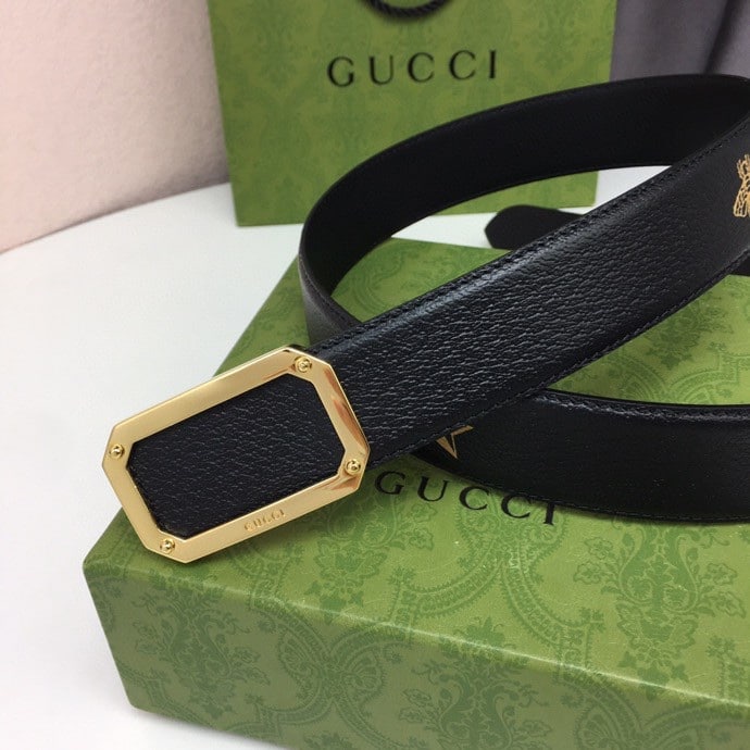 Gucci Black Belt With Square Gold Buckle And Bee Star 35Mm