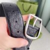 Gucci Calfskin Monogram Black Belt Silver Metal 4Cm