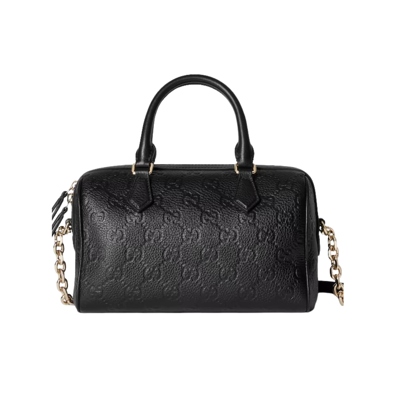 Gucci Gg Emblem Small Top Handle Bag Black Gg Grainy Leather 815255 AAEEM 1000 26Cm / 10.2 Inches