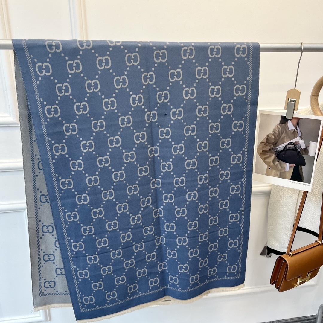Gucci Gg Jacquard Knitted Scarf Blue