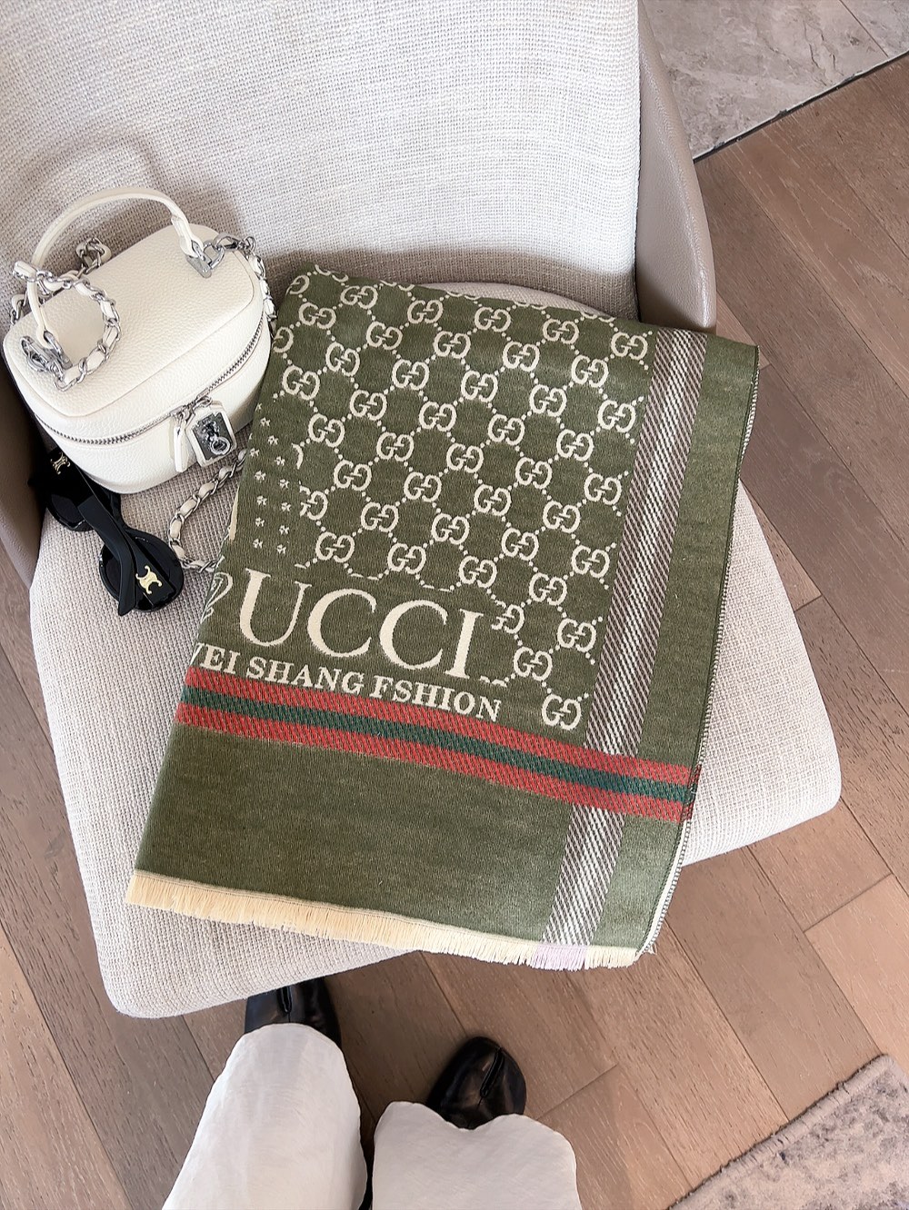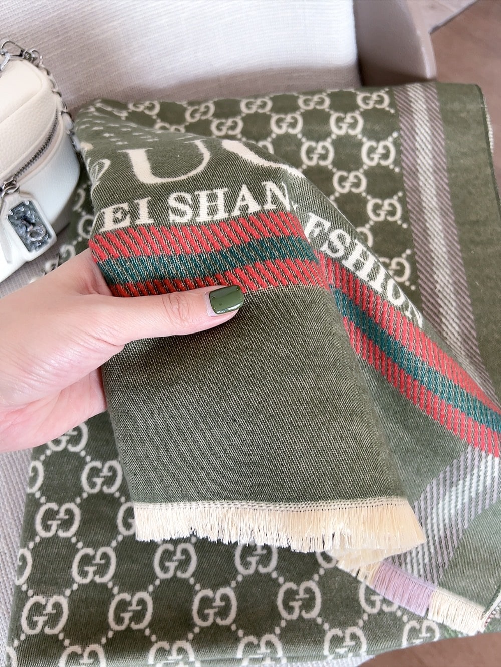 Gucci Gg Jacquard Pattern Knit Scarf Green