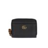 Complement smart and casual edits alike with the Marmont card case from the latest collection by Italian house Gucci. The minimalistic silhouette is crafted from leather with a moiré lining. This piece is given a stylish monochromatic finish with classic GG hardware in a tonal resin finish