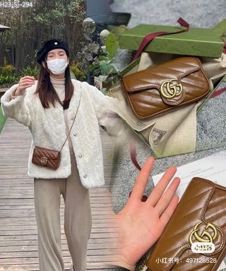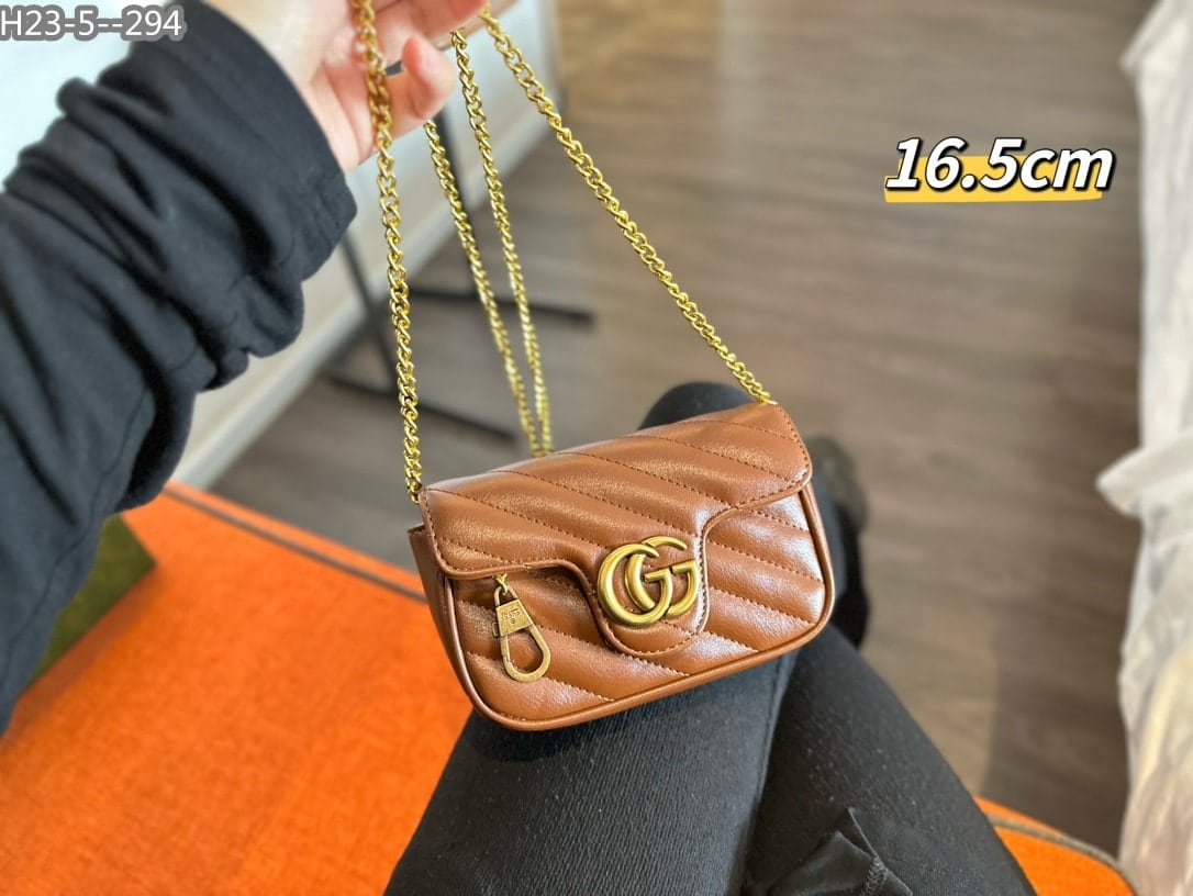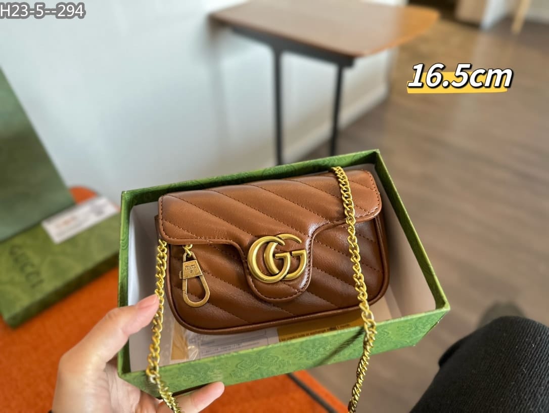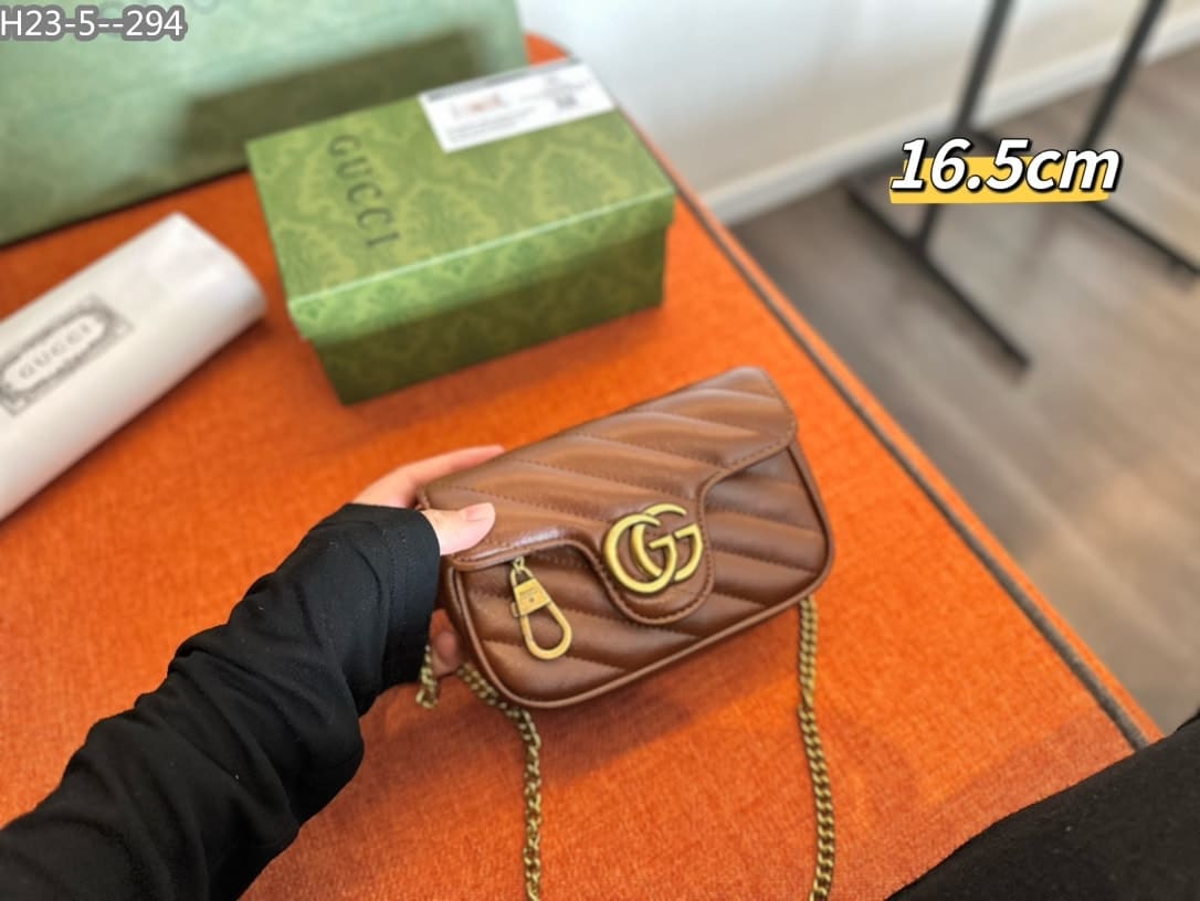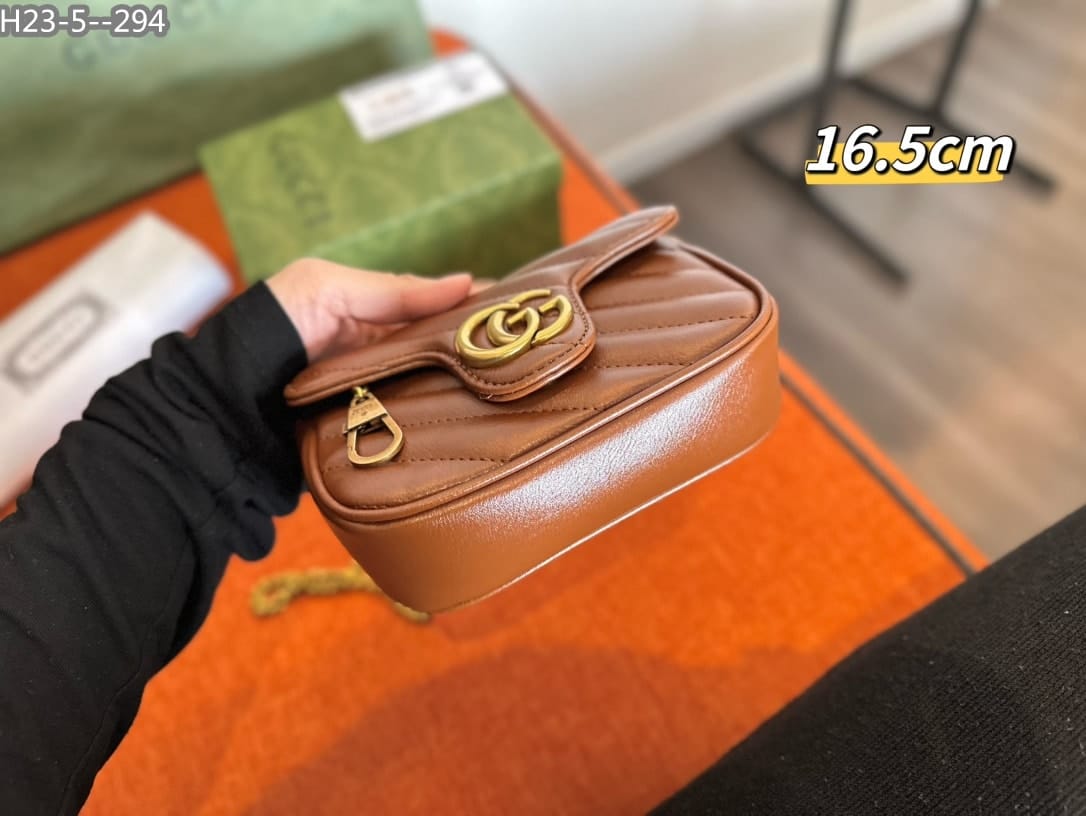 Gucci Gg Marmont Leather Super Mini Bag ‎/ Brown 16Cm
