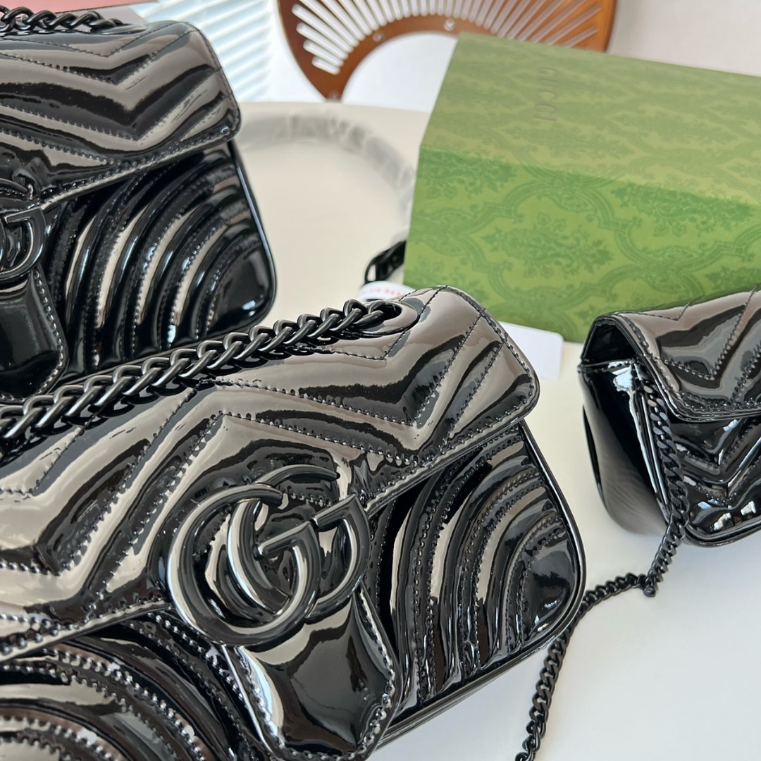 Gucci Gg Marmont Patent Super Mini Bag Black Patent 17Cm 476433 Aacde 1000