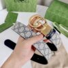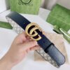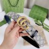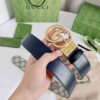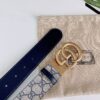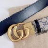 Gucci Gg Marmont Reversible Belt Gold Metal Beige Blue 38Mm 659416 92Tic 9769