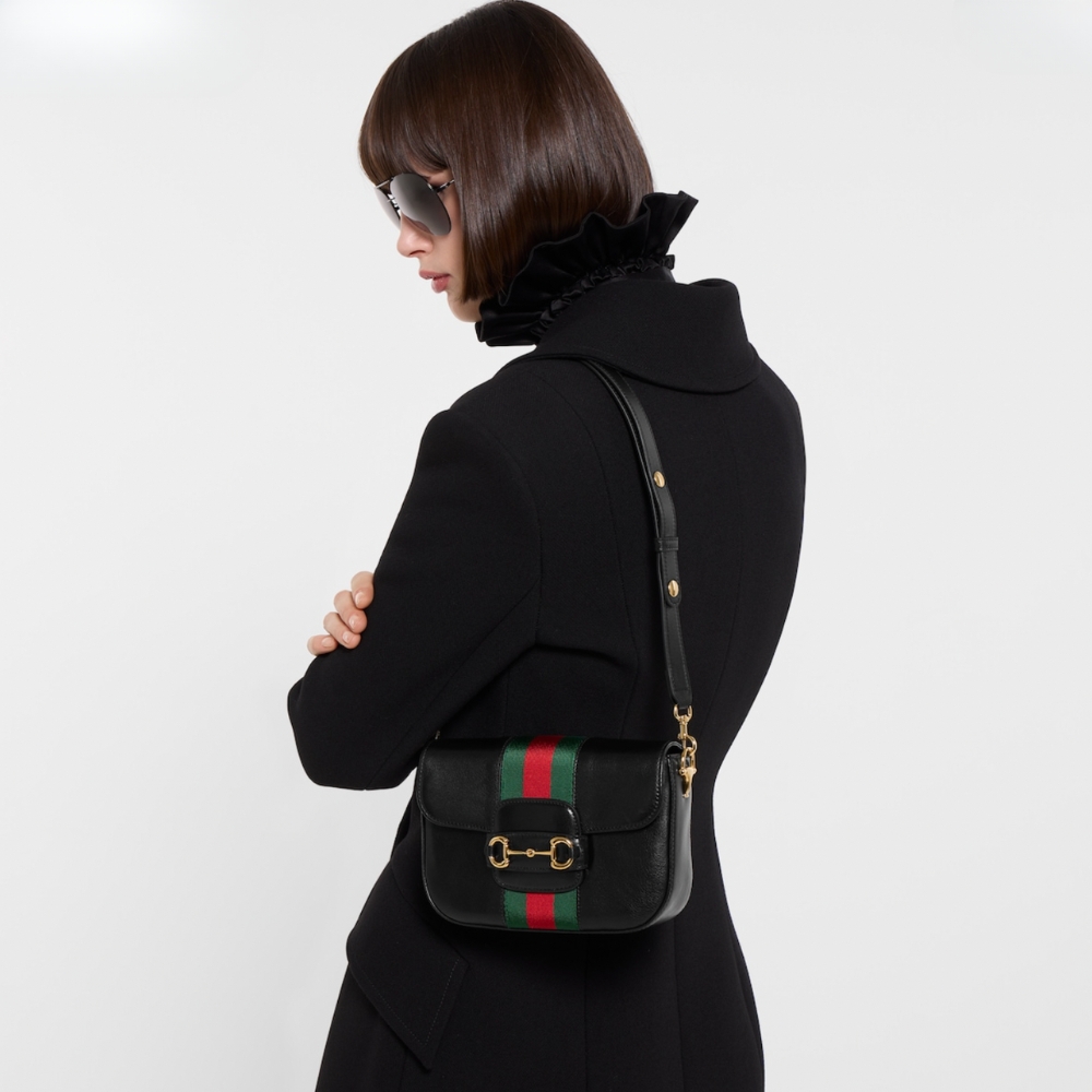 Introducing Spring Summer 2026. Gucci Horsebit 1955 proposes a supple, sophisticated shape. Crafted from soft leather, the style is complete with the Web detail and a sleek adjustable leather strap.