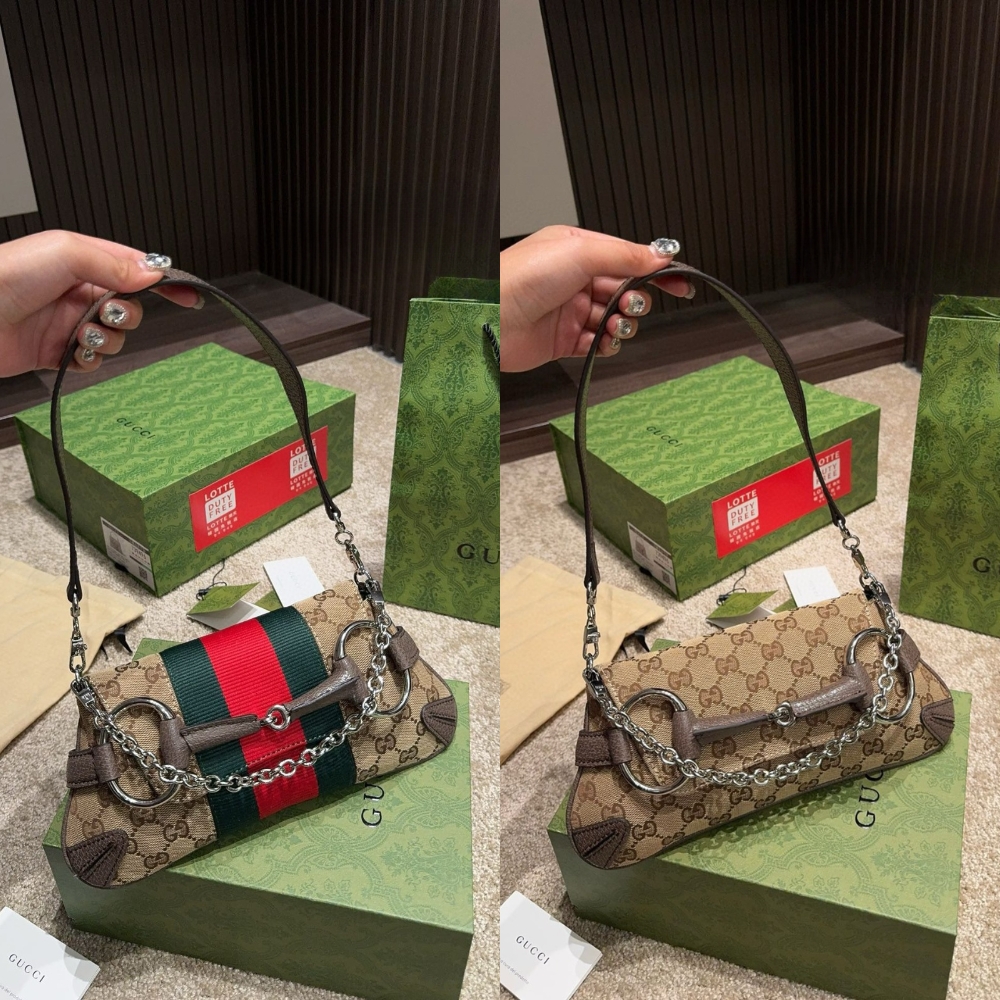 Gucci Horsebit Chain Small Shoulder Bag Beige / 10.6 x 4.5 x 2 inches / Fit Daily Essentials / Daily Bags / Shoulder Bag