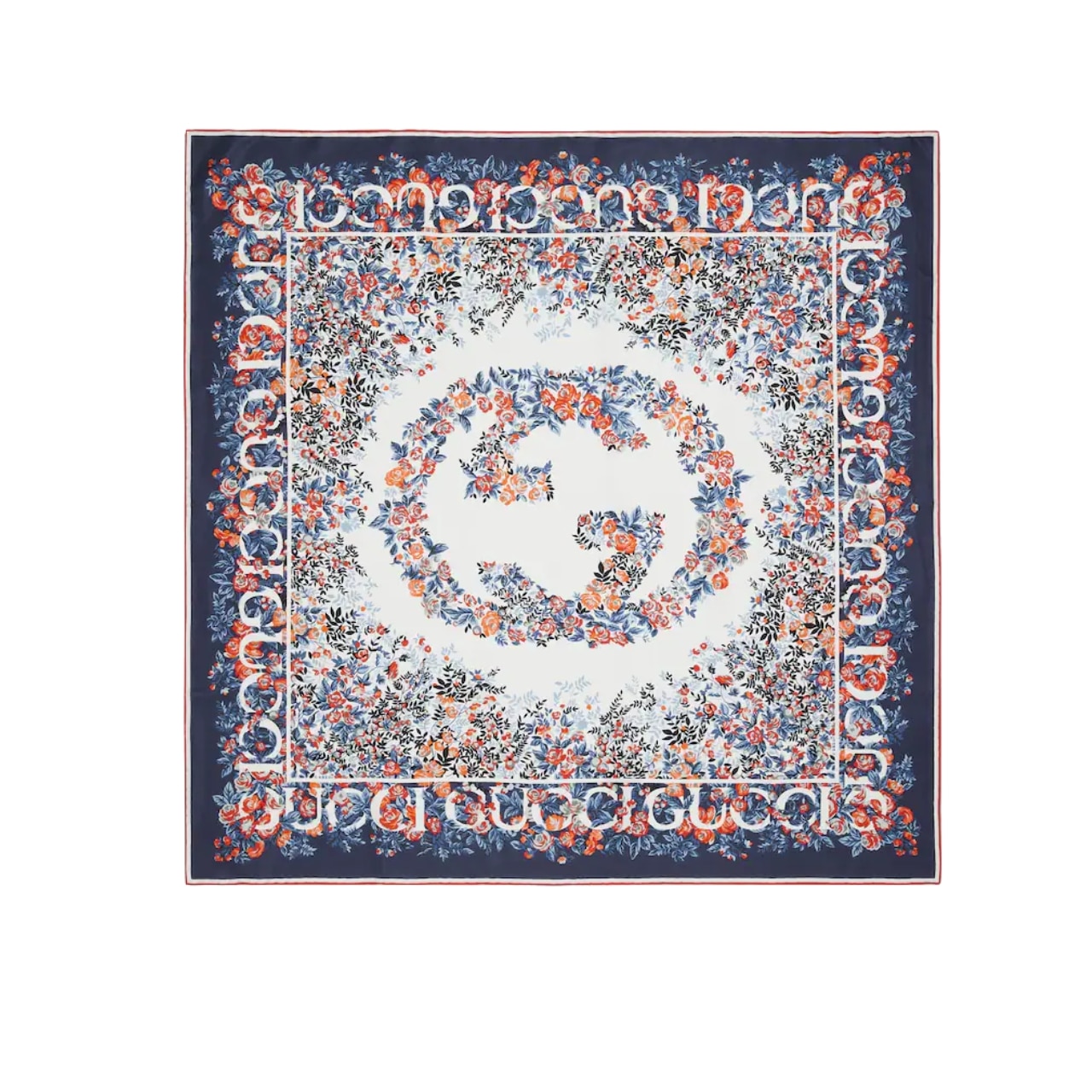 Gucci Interlocking G Floral Print Silk Carré Navy And Red 783157 3G001 4174