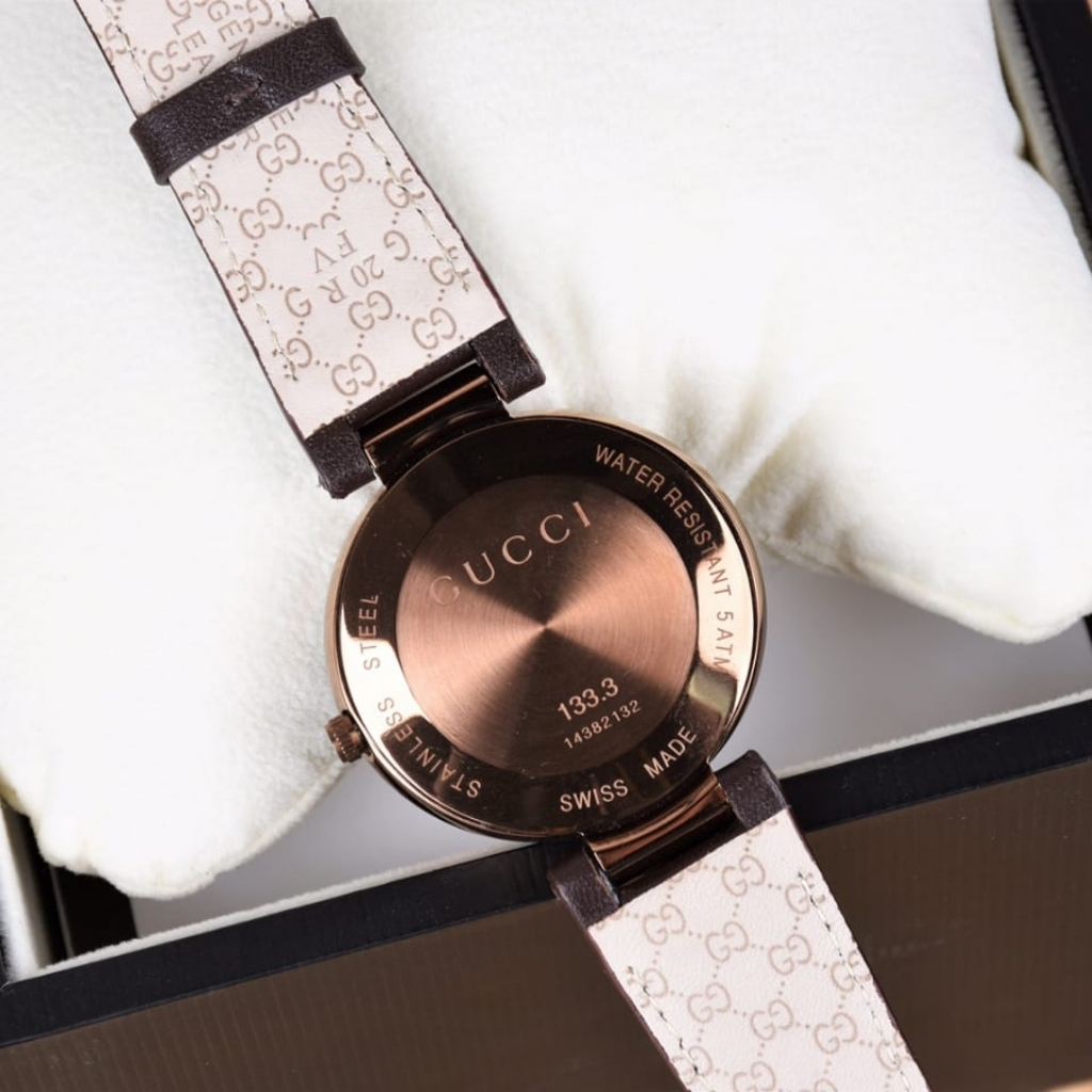 Gucci Interlocking G YA133504 is a beautiful and interesting Ladies watch. Case is made out of PVD rose plating while the dial colour is Bronze. In regards to the water resistance, the watch has got a resistance.