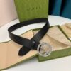 Gucci Leather Belt With Gold Interlocking G 4Cm