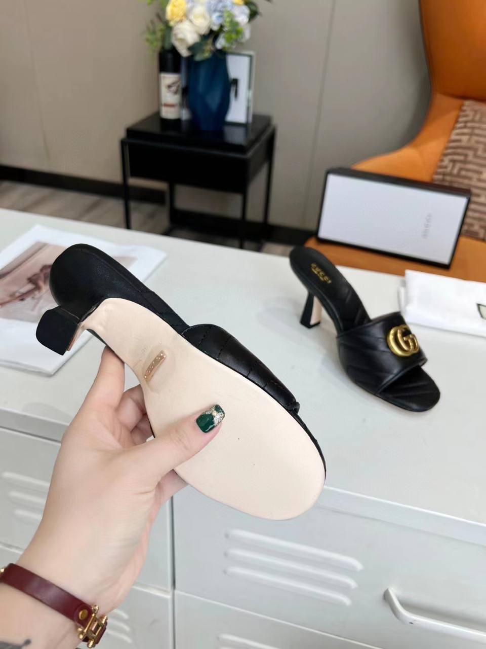 Gucci Marmont Double G Slide Sandal Black 674839 Bko00 1000