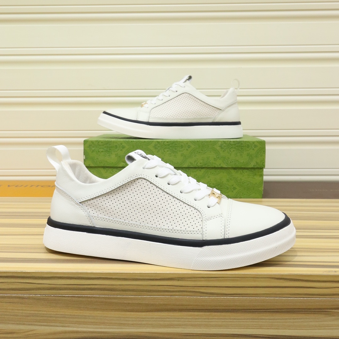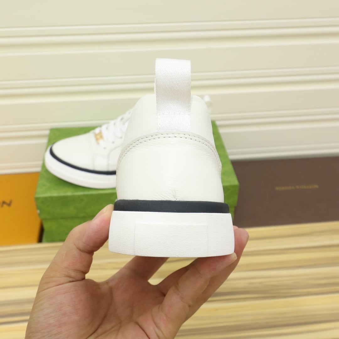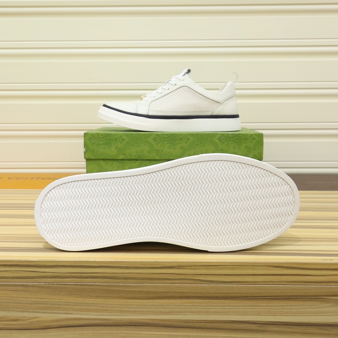 Gucci Men’S Platform Sneakers Leather White With Black Edge