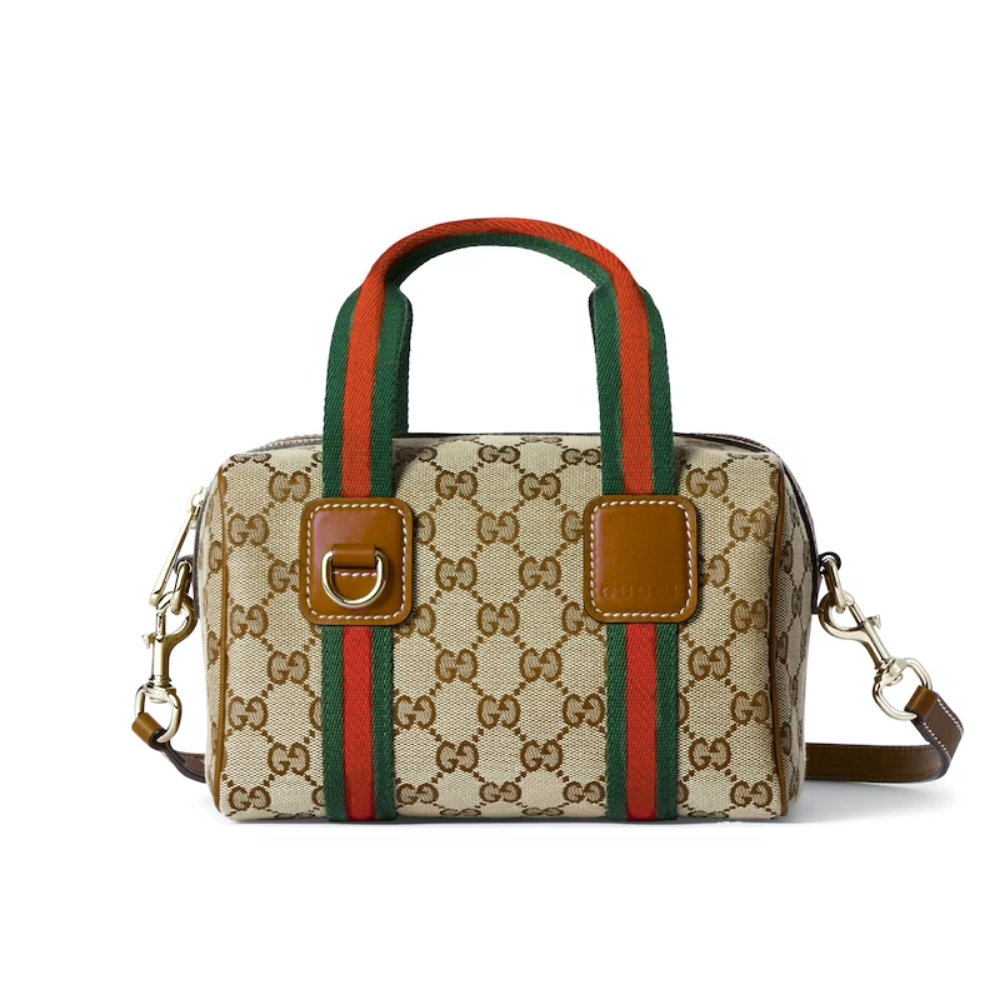 Inspired by the Gucci duffle silhouette, the Mini GG handbag continues to revisit the House’s codes and celebrated travel legacy with different materials. This version is crafted in suede for an added touch of sophistication, which speaks to its effortless elegance while highlighting the signature GG motif.