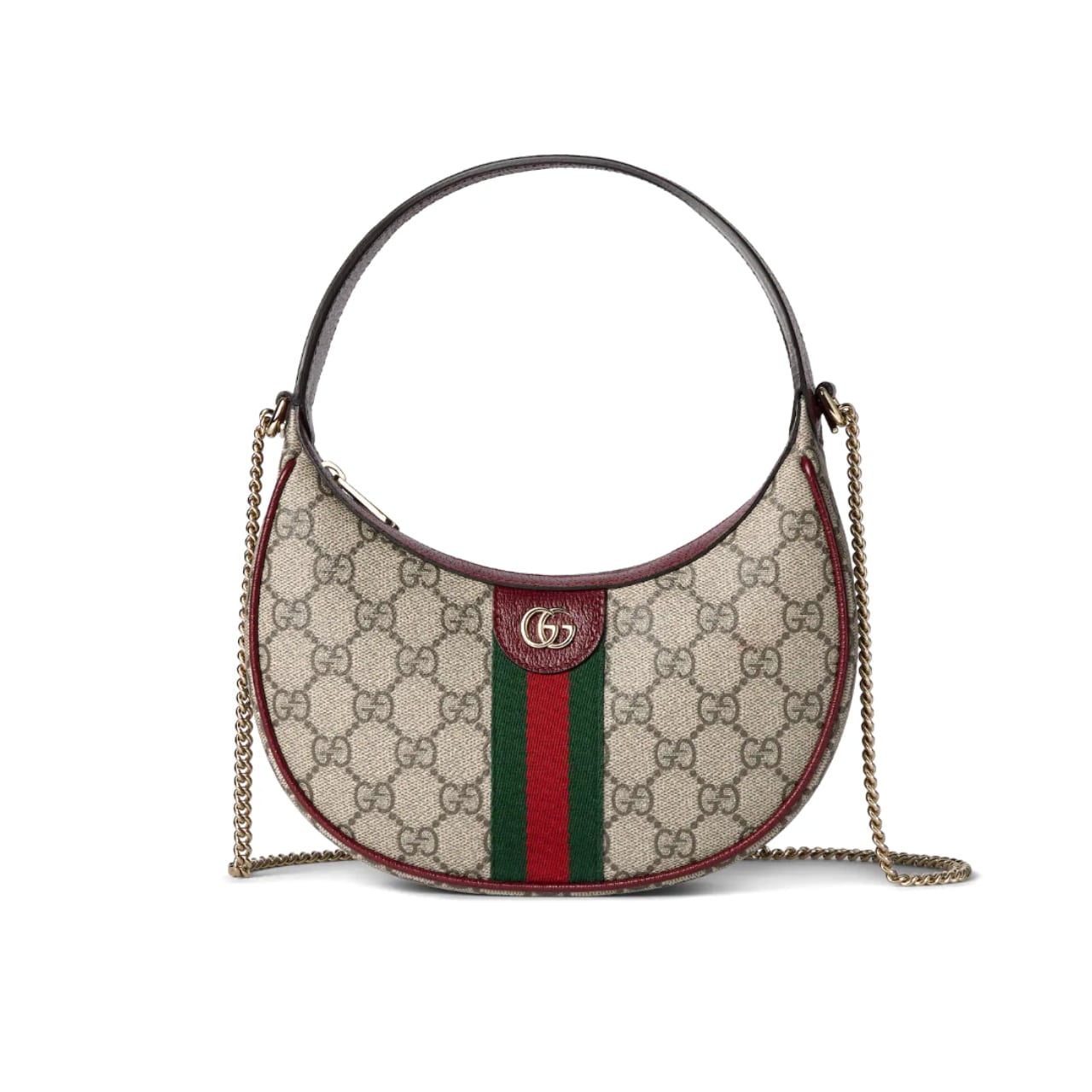 Gucci Ophidia Small Shoulder Bag Beige And Dark Red GG Fabric 22Cm / 8.7 inches