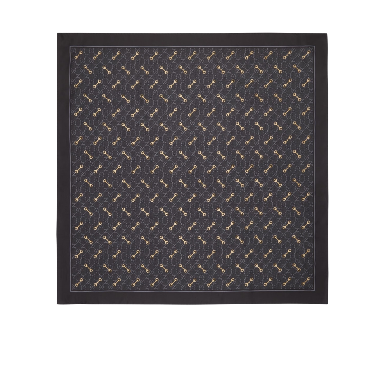 Gucci Printed Silk Carré Gold GG In Black ‎662576 3G001 1000